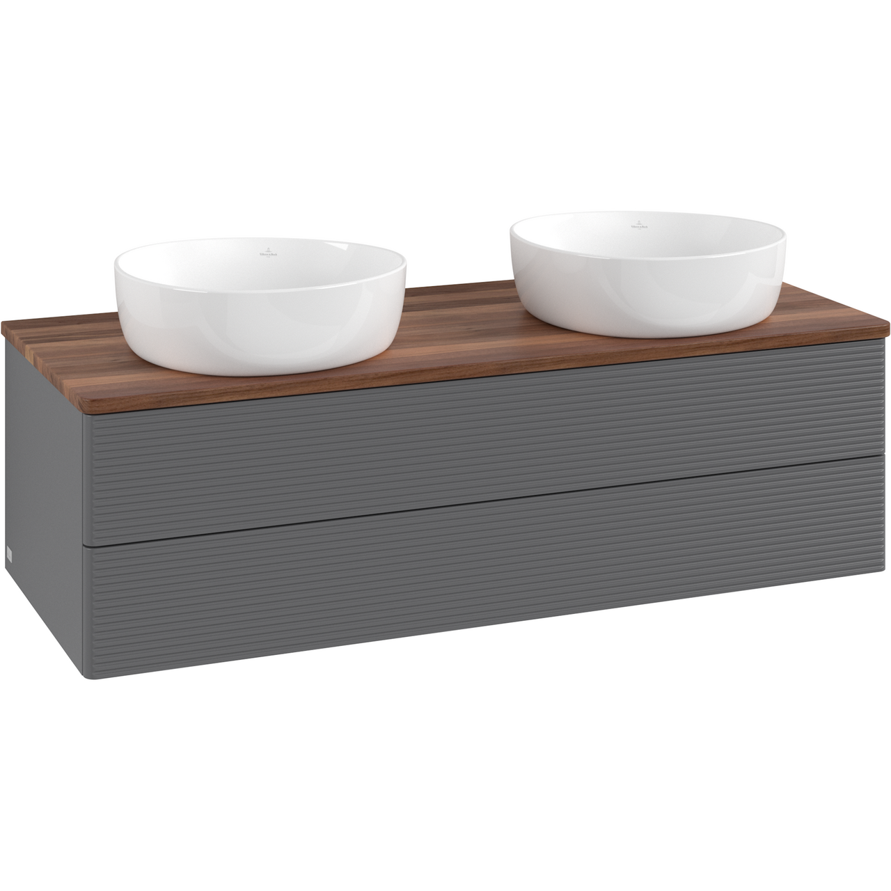 V&b antao servantskap 2 skuffer rillet 1200x360x500 for 2 serv. u/kranhull m/lys antrasitt/valnøtt