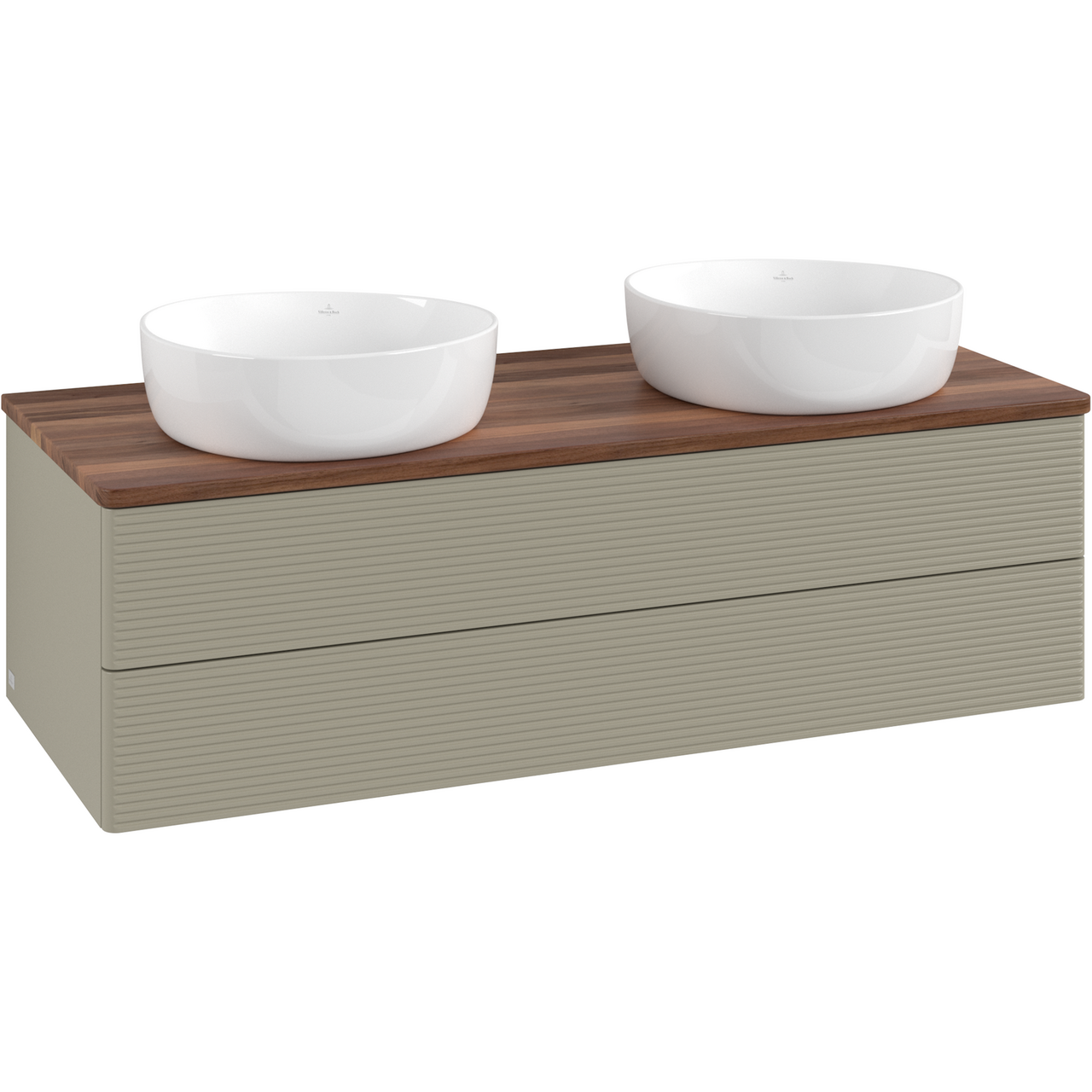 V&b antao servantskap 2 skuffer rillet 1200x360x500 for 2 serv. u/kranhull m/lys stengrå/valnøtt