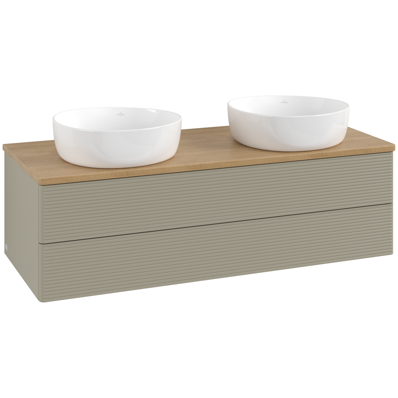 V&b antao servantskap 2 skuffer rillet 1200x360x500 for 2 serv. u/kranhull stengrå/eik