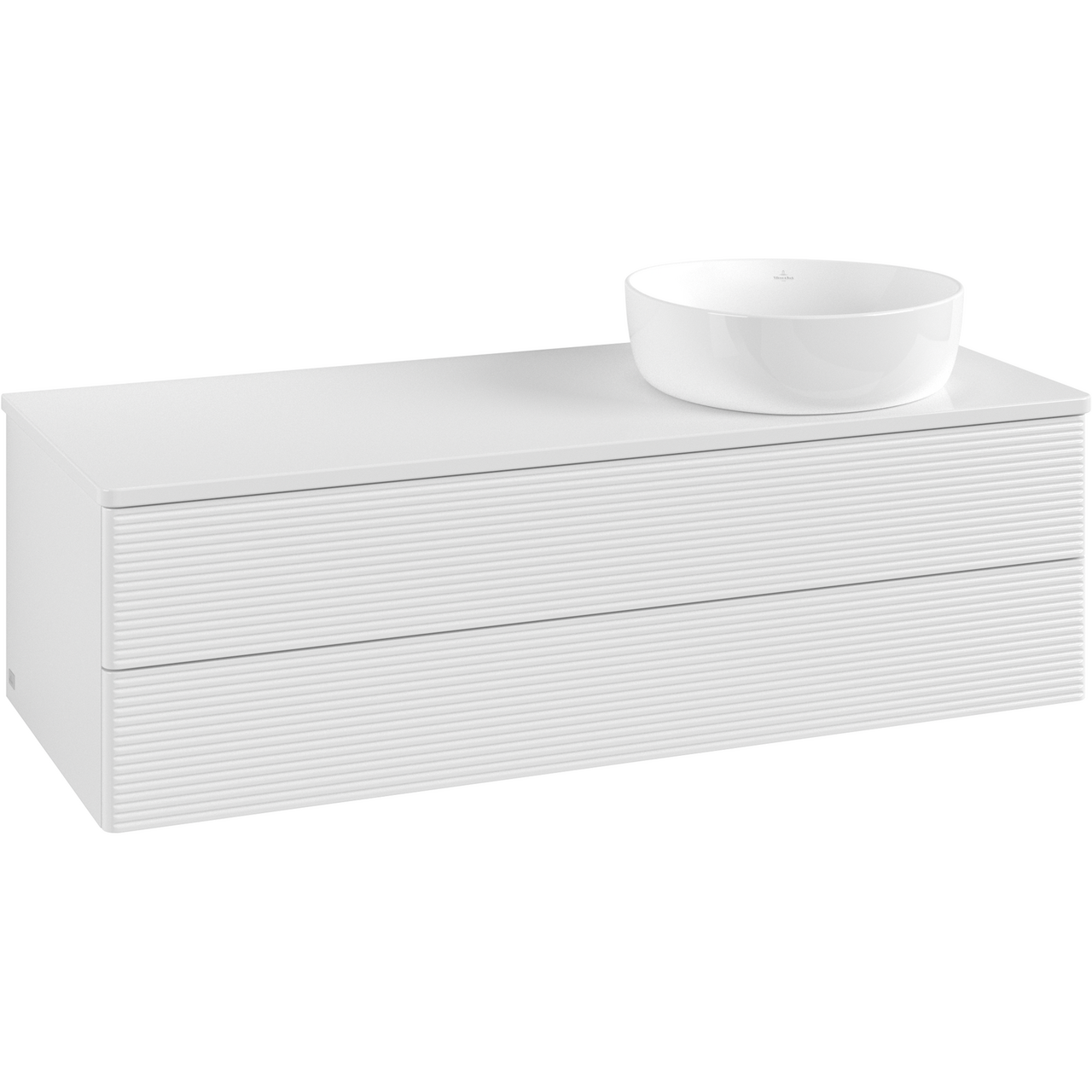 V&b antao servantskap 2 skuffer rillet 1200x360x500 høyre m/kranhull m/lys hvit