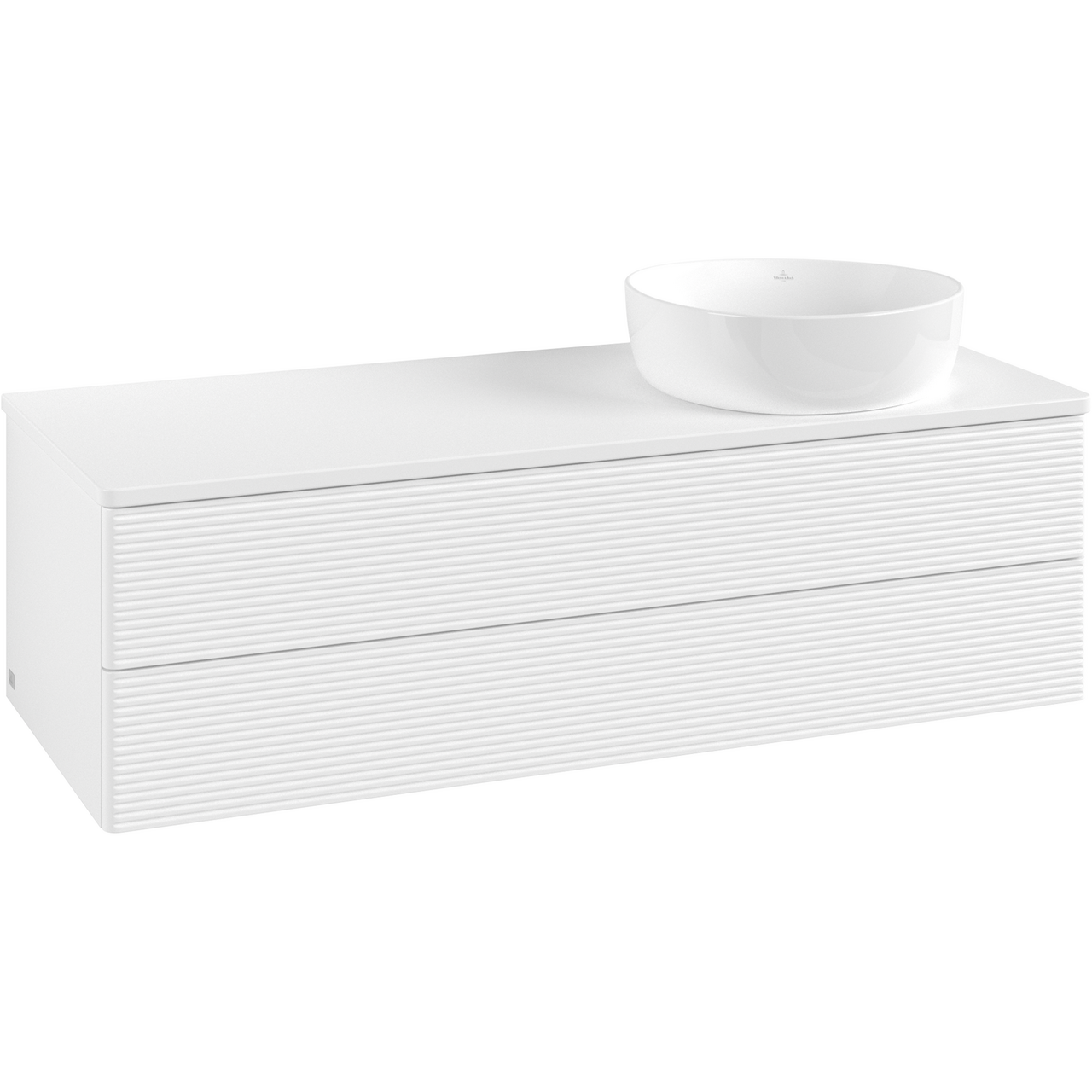 V&b antao servantskap 2 skuffer rillet 1200x360x500 høyre m/kranhull m/lys matt hvit