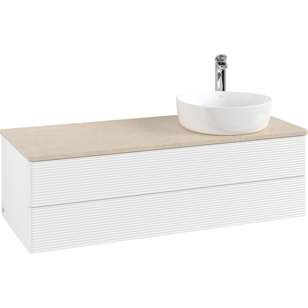 V&B ANTAO SERVANTSKAP 2 SKUFFER RILLET 1200X360X500 HØYRE M/KRANHULL M/LYS MATT HVIT/CRÉME