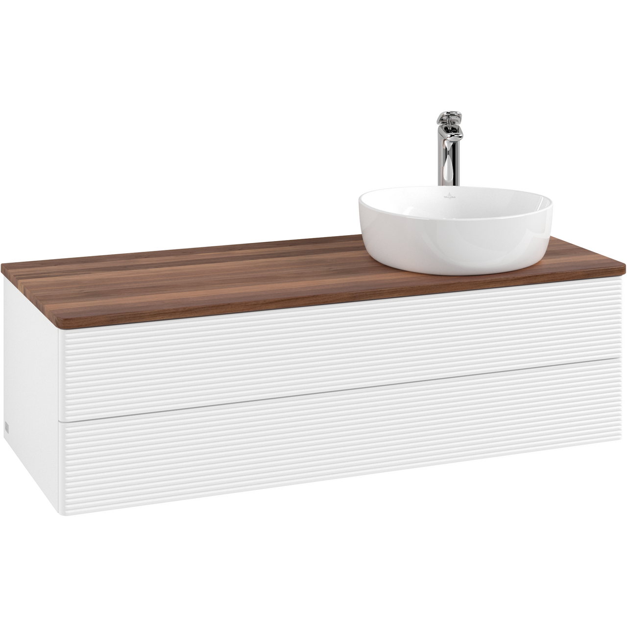 V&b antao servantskap 2 skuffer rillet 1200x360x500 høyre m/kranhull m/lys matt hvit/valnøtt