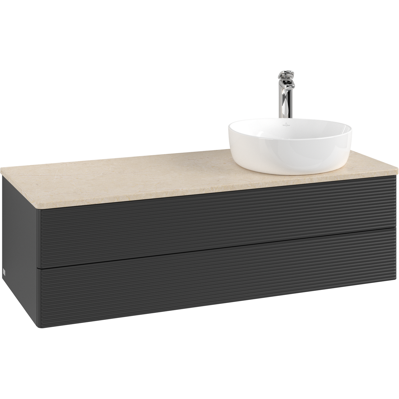 V&b antao servantskap 2 skuffer rillet 1200x360x500 høyre m/kranhull m/lys matt sort/créme