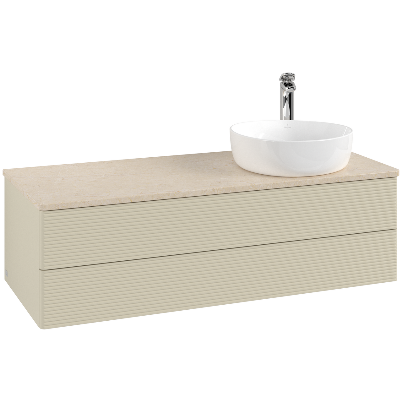 V&b antao servantskap 2 skuffer rillet 1200x360x500 høyre m/kranhull silkegrå/créme