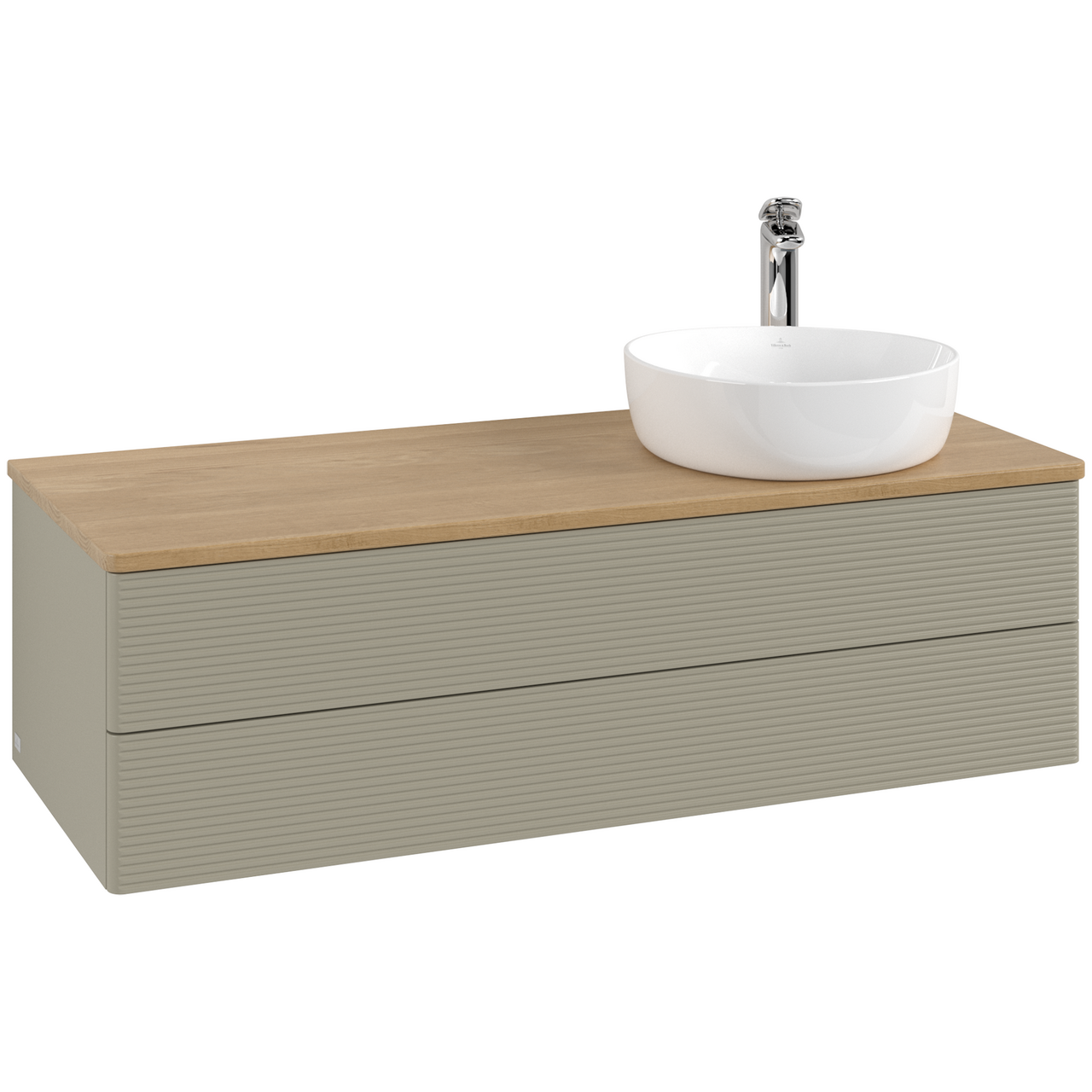 V&b antao servantskap 2 skuffer rillet 1200x360x500 høyre m/kranhull stengrå/eik