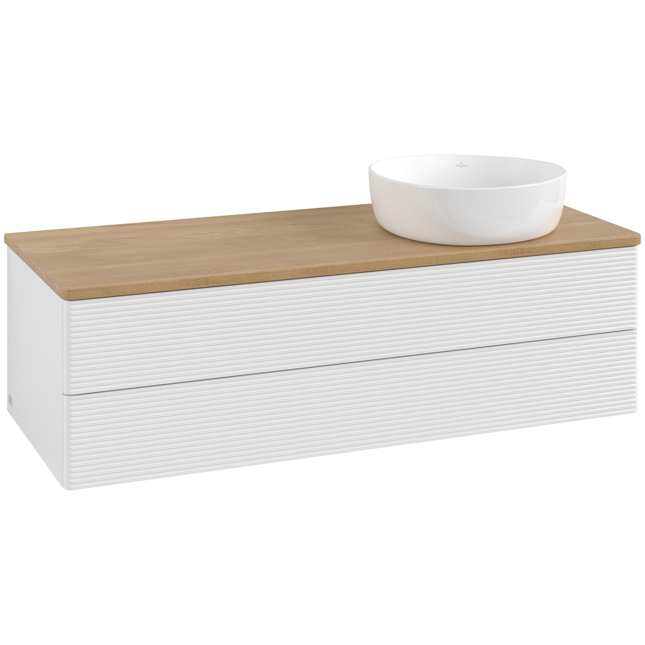 V&b antao servantskap 2 skuffer rillet 1200x360x500 høyre u/kranhull hvit/eik