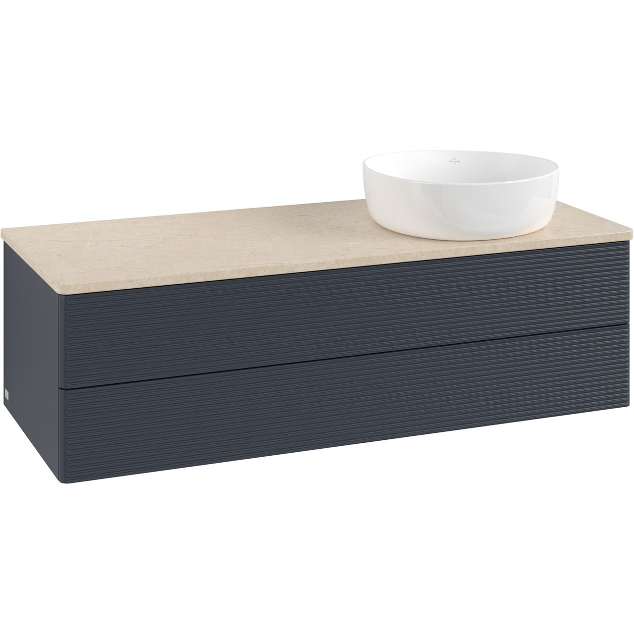 V&b antao servantskap 2 skuffer rillet 1200x360x500 høyre u/kranhull m/lys blå/créme