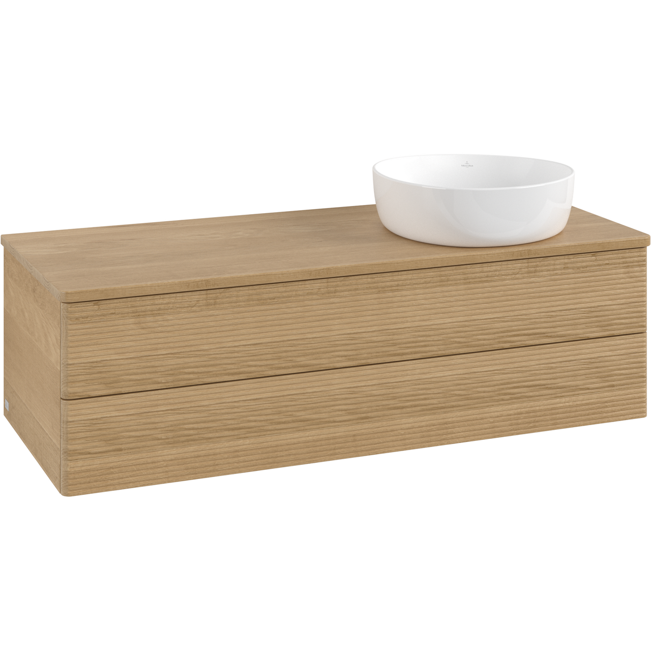 V&b antao servantskap 2 skuffer rillet 1200x360x500 høyre u/kranhull m/lys eik