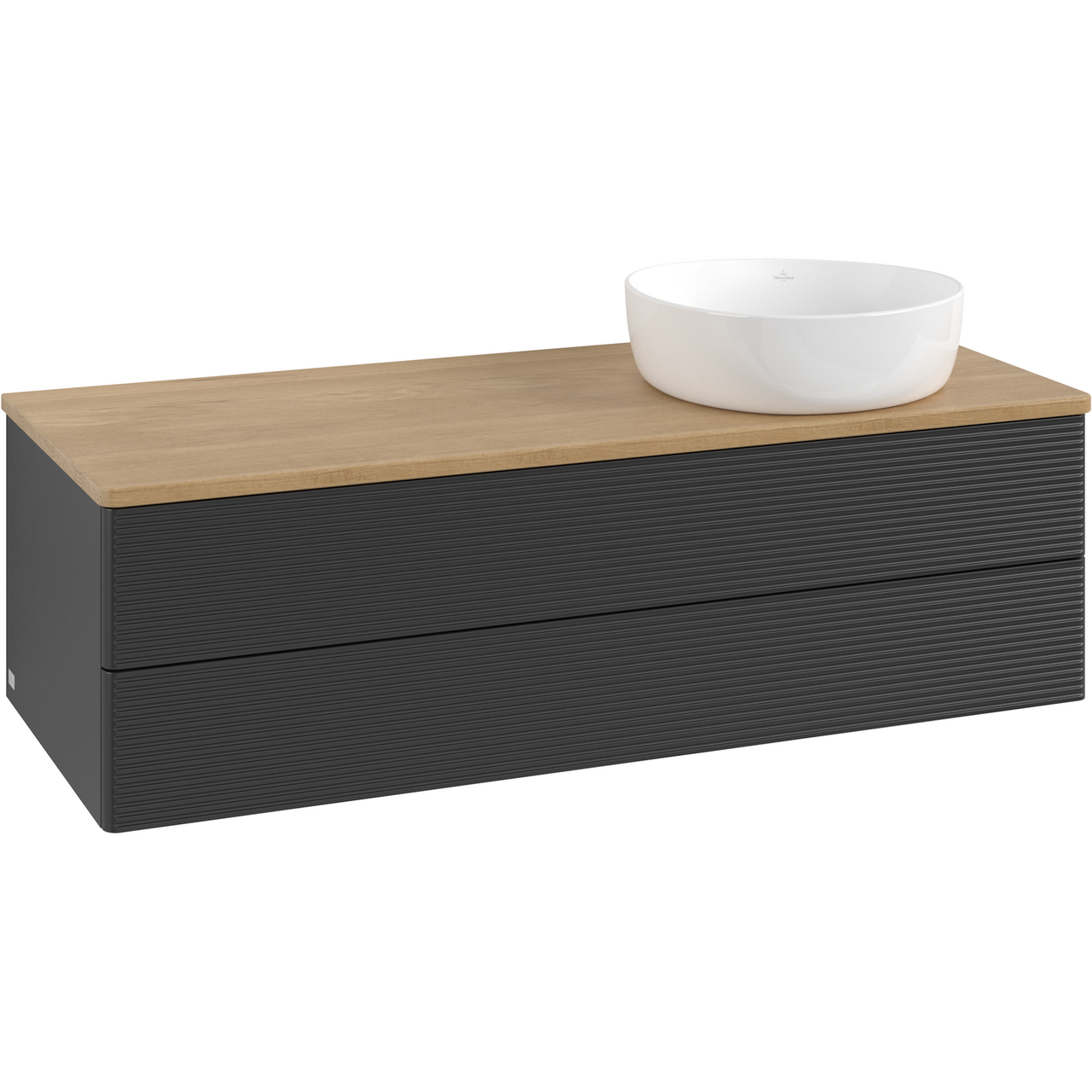 V&b antao servantskap 2 skuffer rillet 1200x360x500 høyre u/kranhull m/lys matt sort/eik