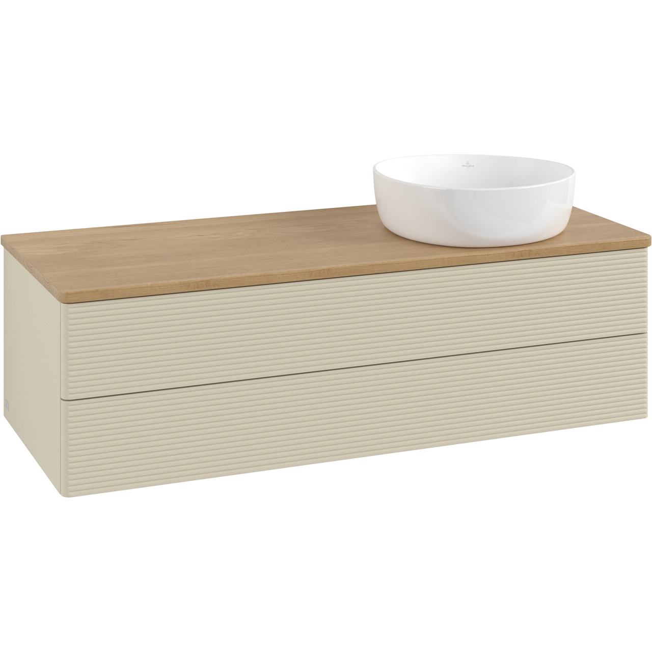 V&b antao servantskap 2 skuffer rillet 1200x360x500 høyre u/kranhull m/lys silkegrå/eik