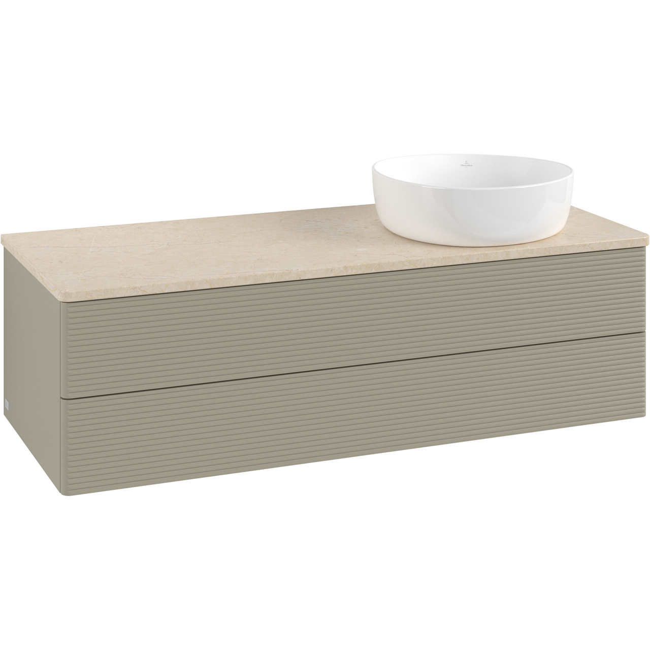 V&b antao servantskap 2 skuffer rillet 1200x360x500 høyre u/kranhull m/lys stengrå/créme