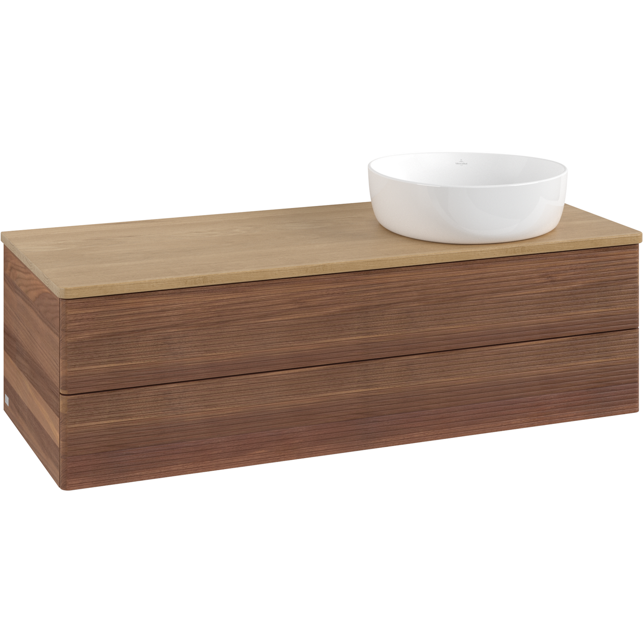 V&b antao servantskap 2 skuffer rillet 1200x360x500 høyre u/kranhull m/lys valnøtt/eik