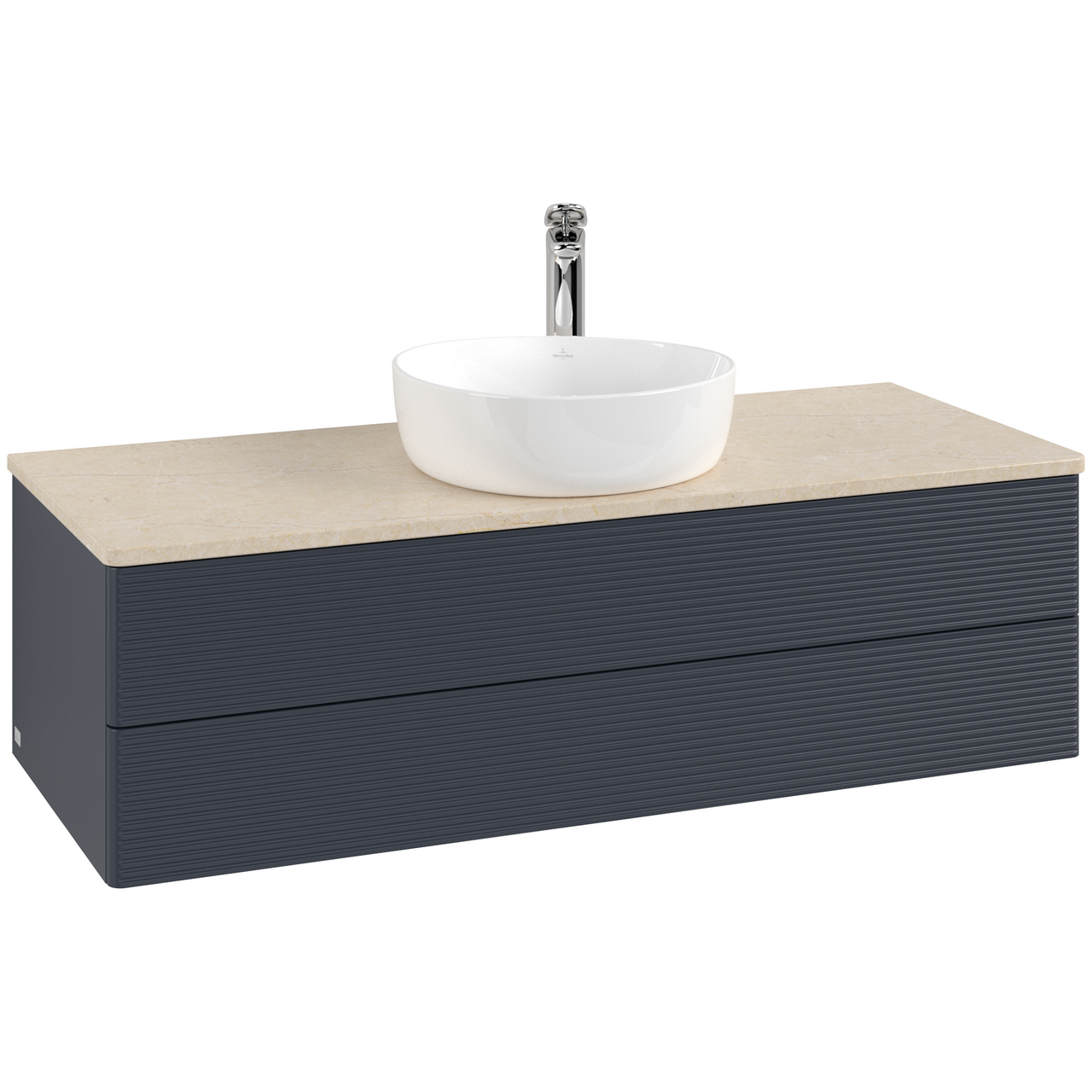 V&b antao servantskap 2 skuffer rillet 1200x360x500 m/kranhull blå/créme