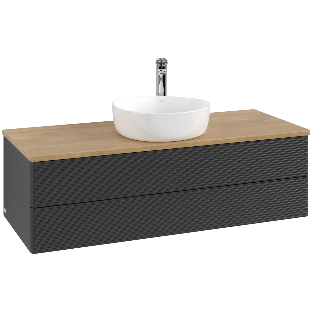 V&B ANTAO SERVANTSKAP 2 SKUFFER RILLET 1200X360X500 M/KRANHULL MATT SORT/EIK
