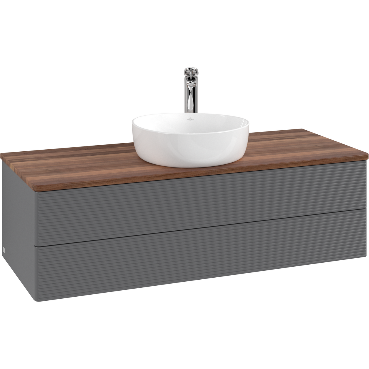 V&B ANTAO SERVANTSKAP 2 SKUFFER RILLET 1200X360X500 M/KRANHULL M/LYS ANTRASITT/VALNØTT