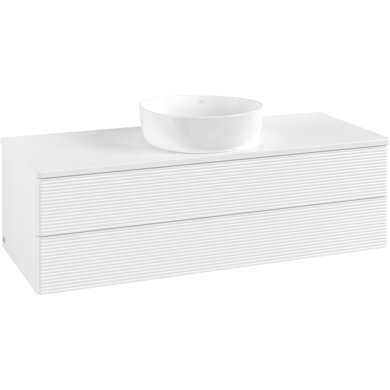 V&B ANTAO SERVANTSKAP 2 SKUFFER RILLET 1200X360X500 M/KRANHULL M/LYS MATT HVIT