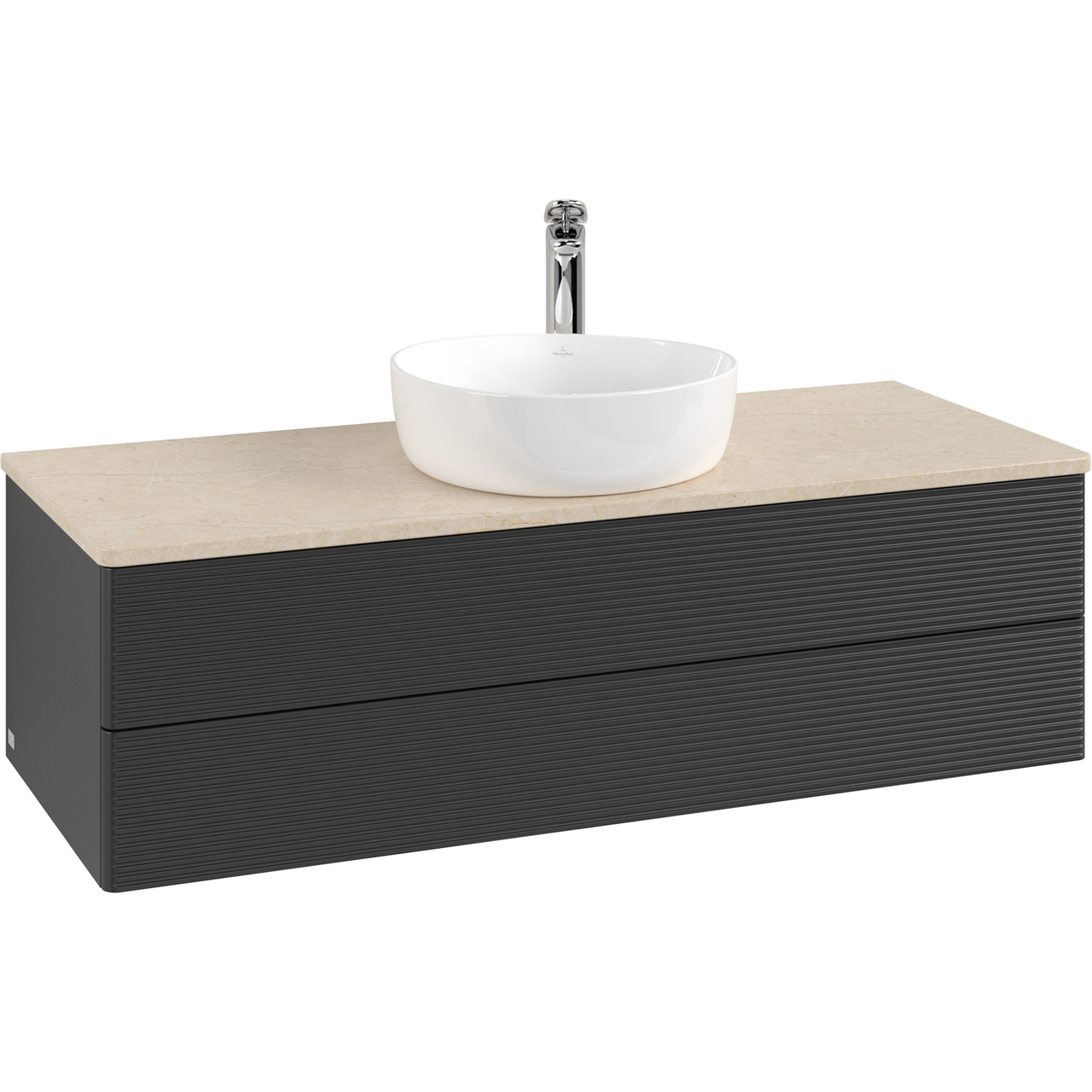 V&B ANTAO SERVANTSKAP 2 SKUFFER RILLET 1200X360X500 M/KRANHULL M/LYS MATT SORT/CRÉME
