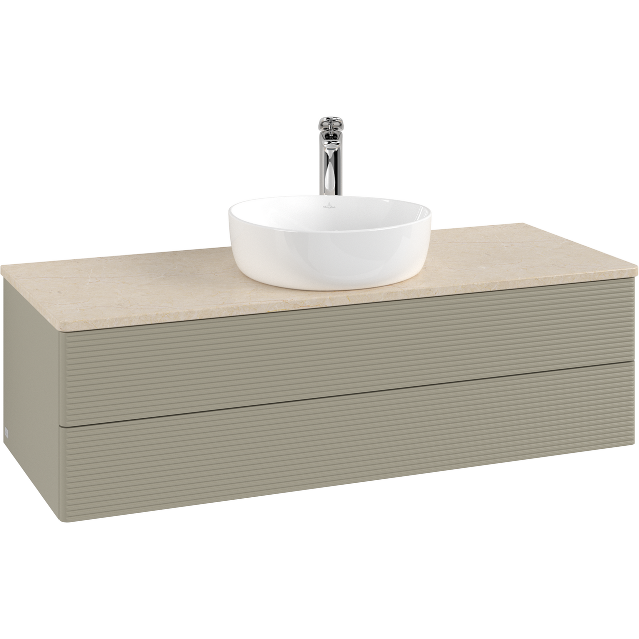 V&b antao servantskap 2 skuffer rillet 1200x360x500 m/kranhull m/lys stengrå/créme