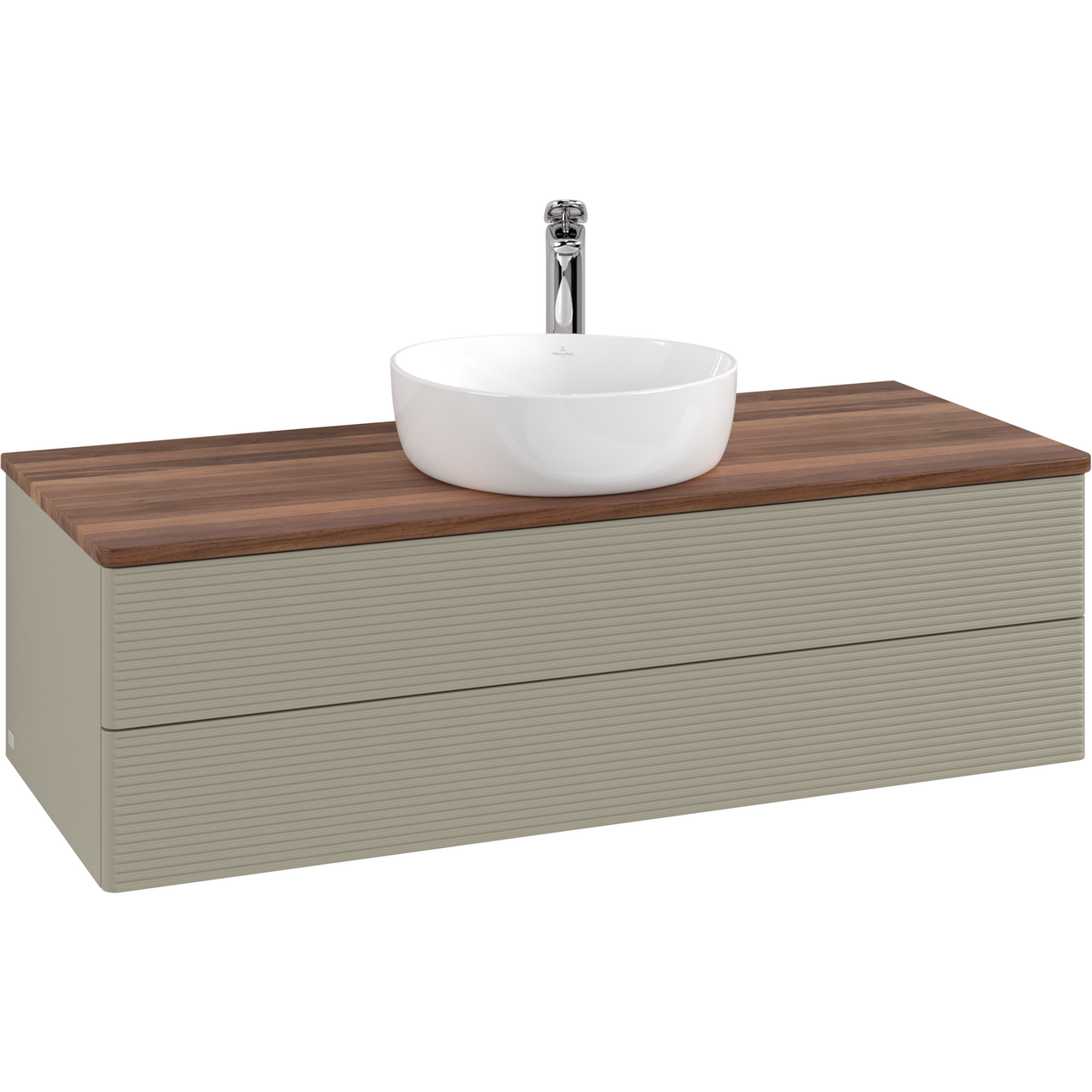 V&b antao servantskap 2 skuffer rillet 1200x360x500 m/kranhull m/lys stengrå/valnøtt