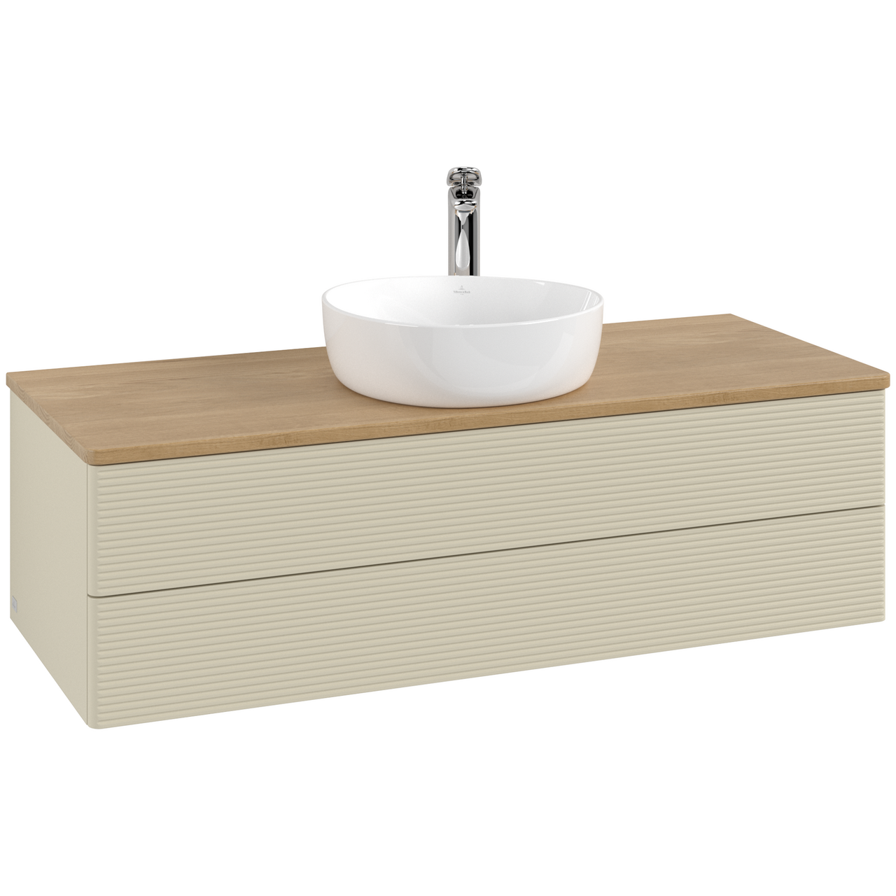V&b antao servantskap 2 skuffer rillet 1200x360x500 m/kranhull silkegrå/eik