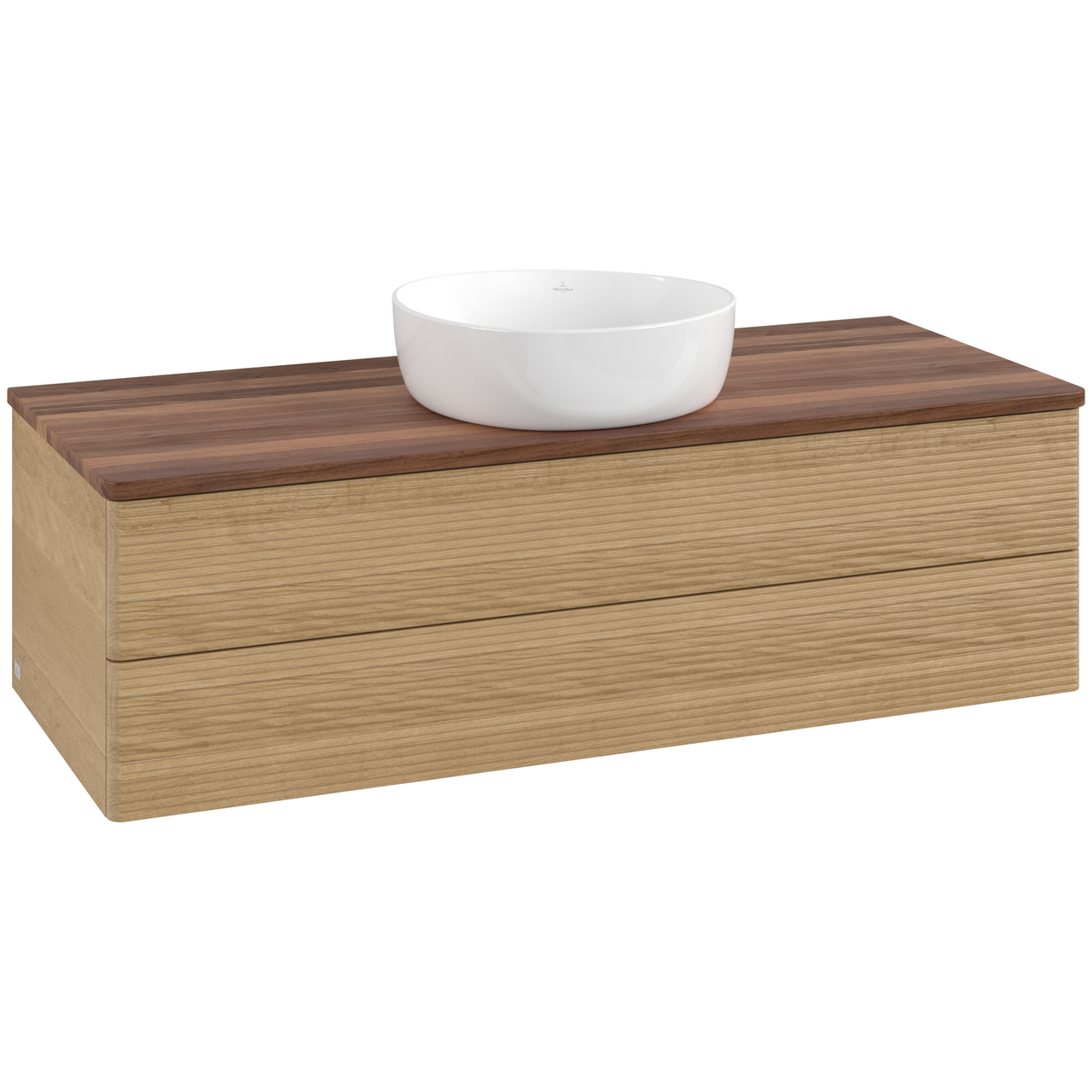 V&b antao servantskap 2 skuffer rillet 1200x360x500 u/kranhull eik/valnøtt