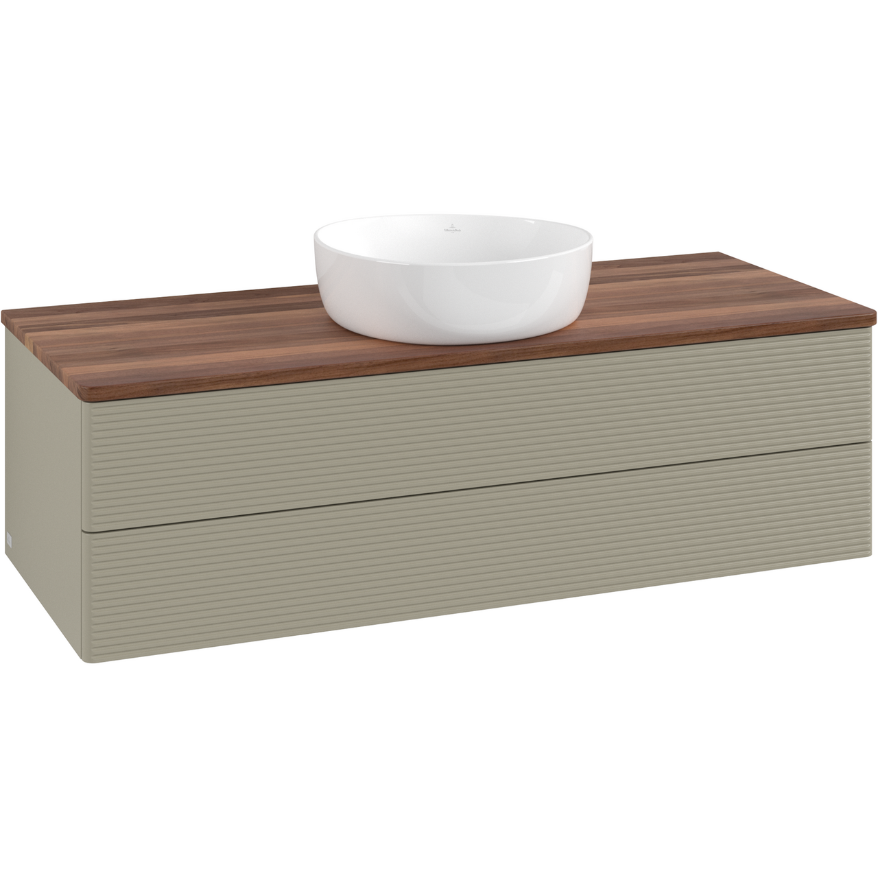 V&b antao servantskap 2 skuffer rillet 1200x360x500 u/kranhull m/lys stengrå/valnøtt