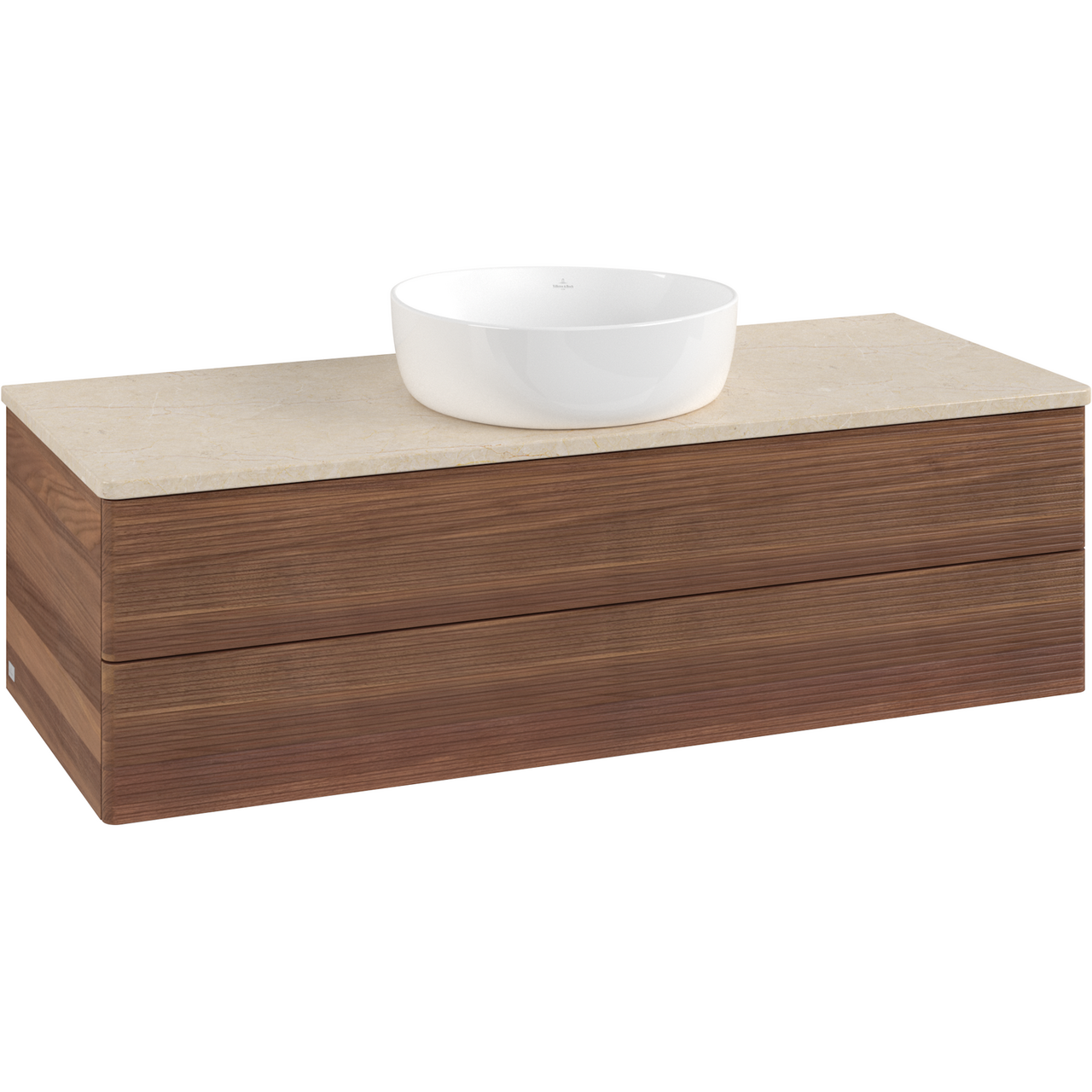 V&b antao servantskap 2 skuffer rillet 1200x360x500 u/kranhull m/lys valnøtt/créme