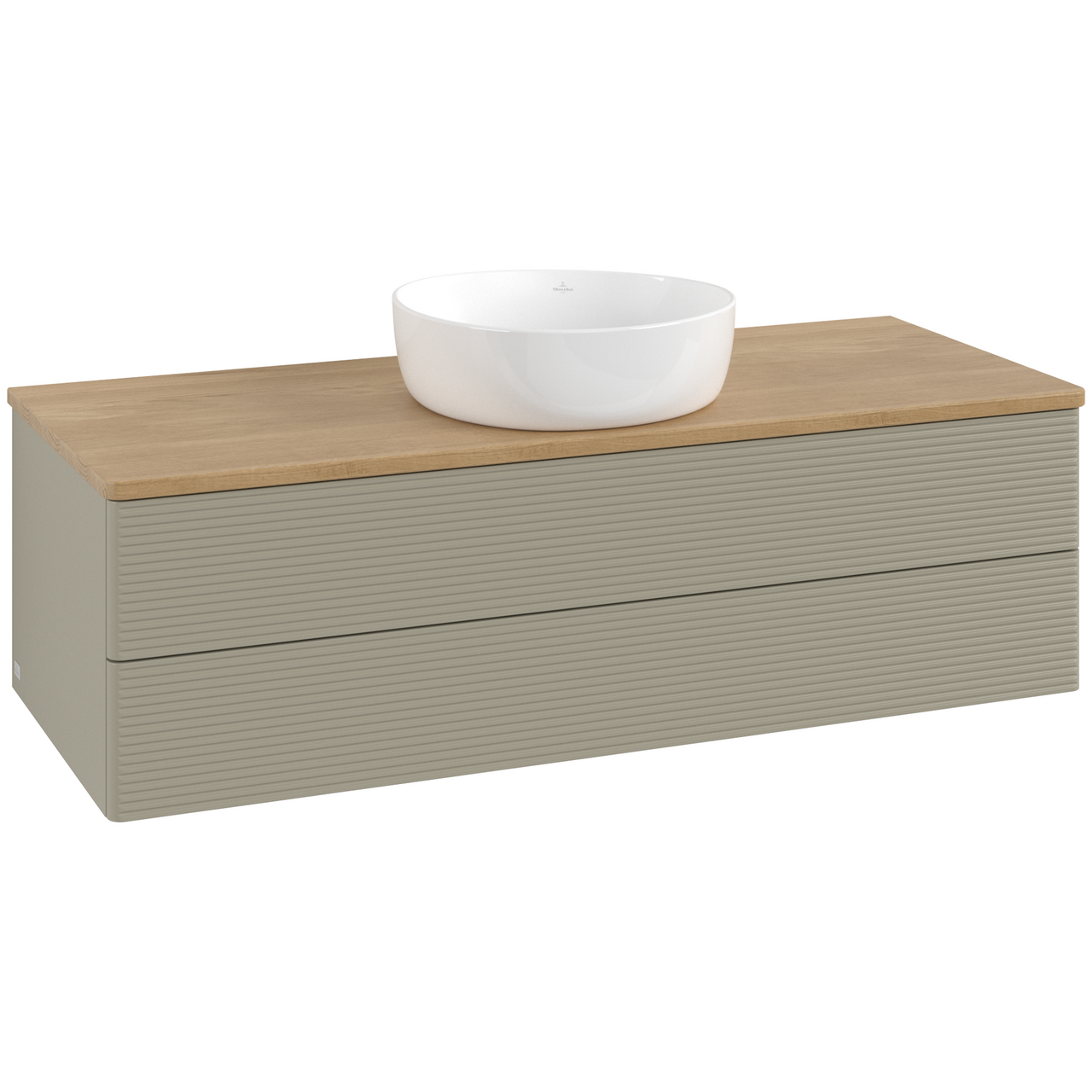V&b antao servantskap 2 skuffer rillet 1200x360x500 u/kranhull stengrå/eik