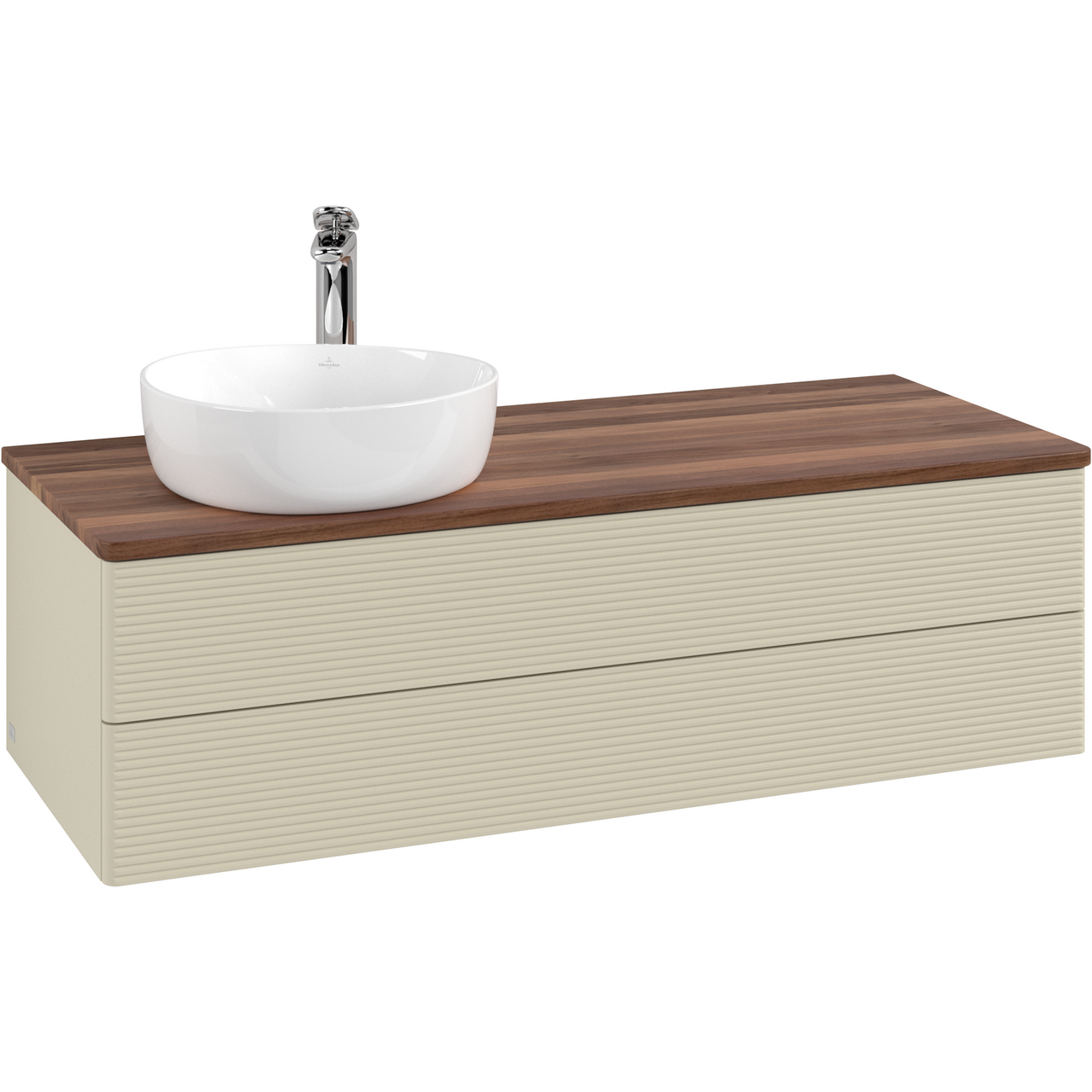 V&b antao servantskap 2 skuffer rillet 1200x360x500 venstre m/kranhull m/lys silkegrå/valnøtt