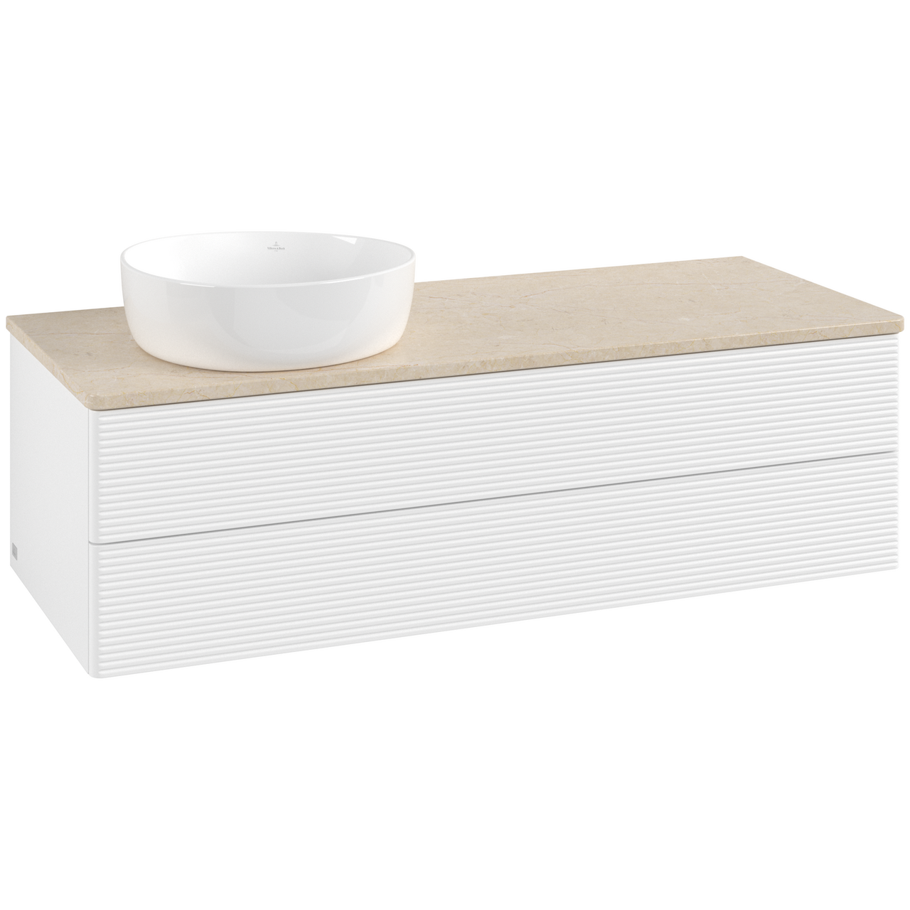 V&B ANTAO SERVANTSKAP 2 SKUFFER RILLET 1200X360X500 VENSTRE U/KRANHULL MATT HVIT/CRÉME