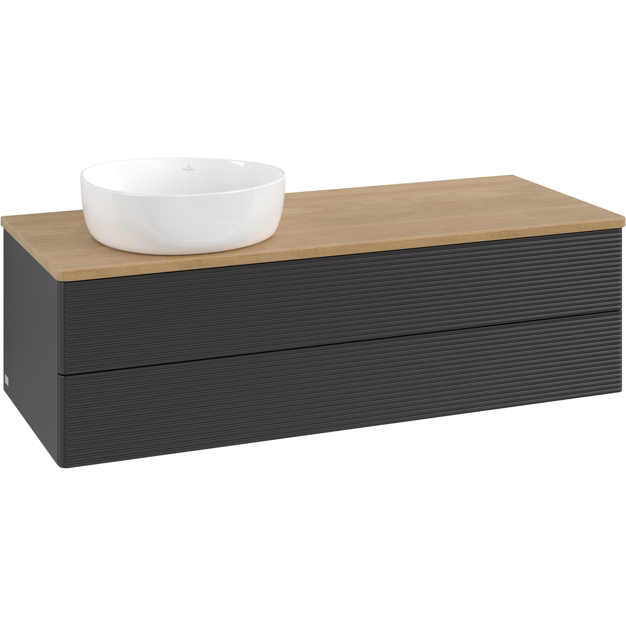 V&B ANTAO SERVANTSKAP 2 SKUFFER RILLET 1200X360X500 VENSTRE U/KRANHULL M/LYS MATT SORT/EIK