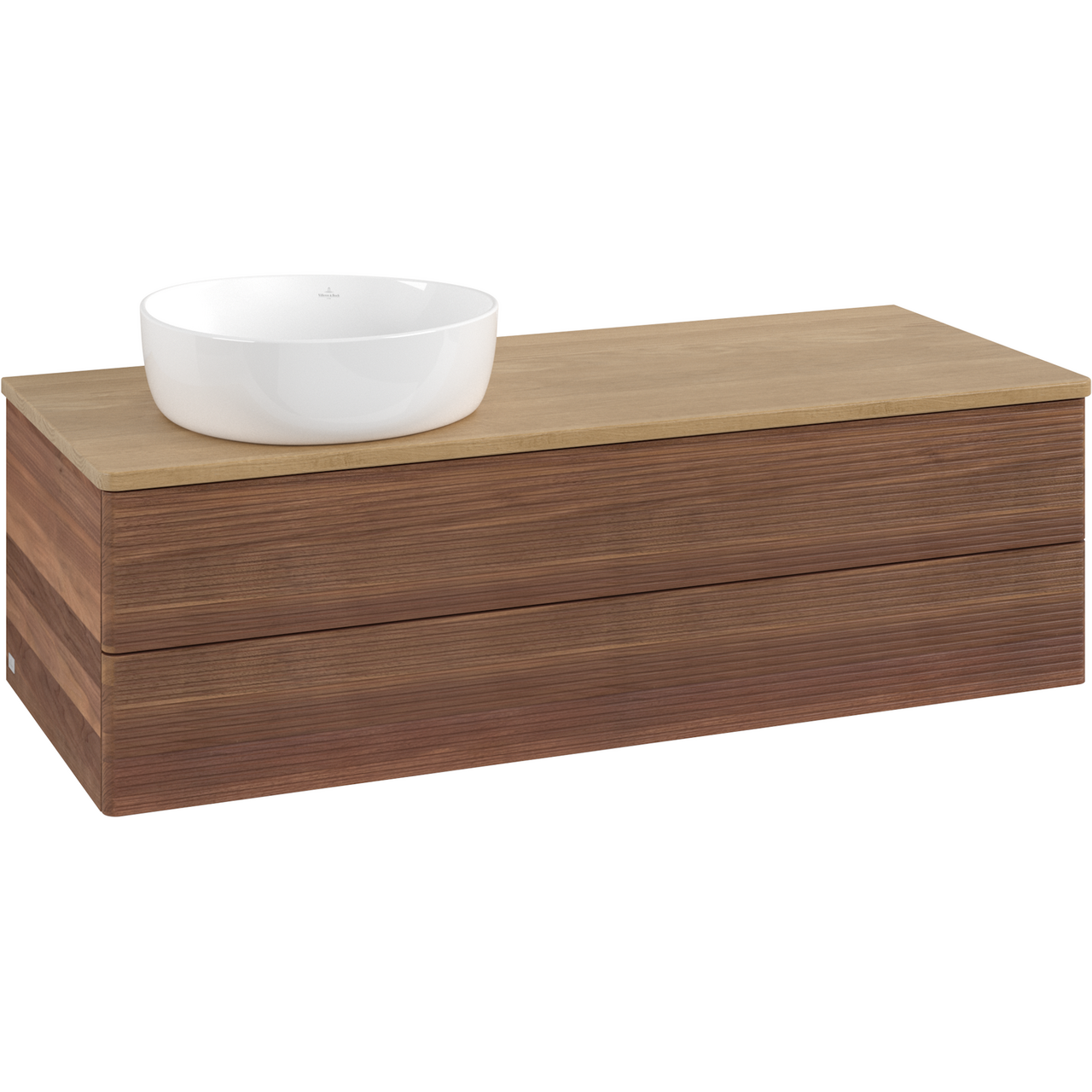 V&b antao servantskap 2 skuffer rillet 1200x360x500 venstre u/kranhull m/lys valnøtt/eik