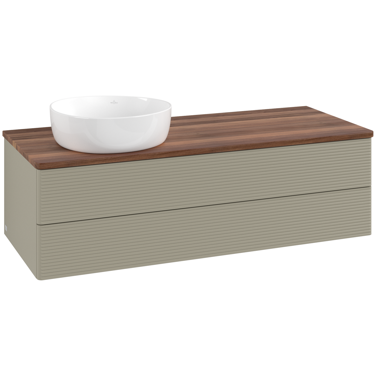 V&b antao servantskap 2 skuffer rillet 1200x360x500 venstre u/kranhull stengrå/valnøtt