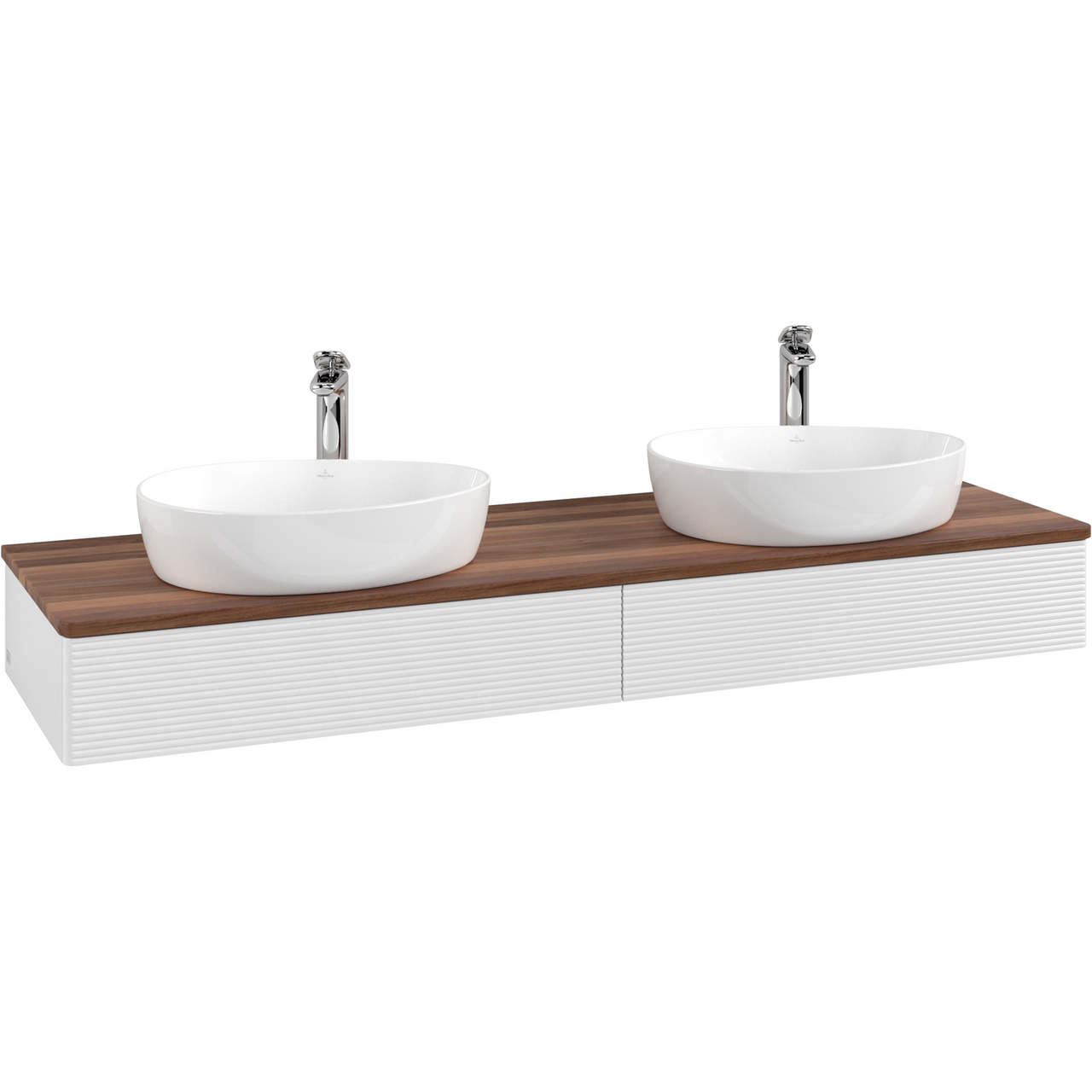V&b antao servantskap 2 skuffer rillet 1600x190x500 for 2 serv. m/kranhull m/lys hvit/valnøtt