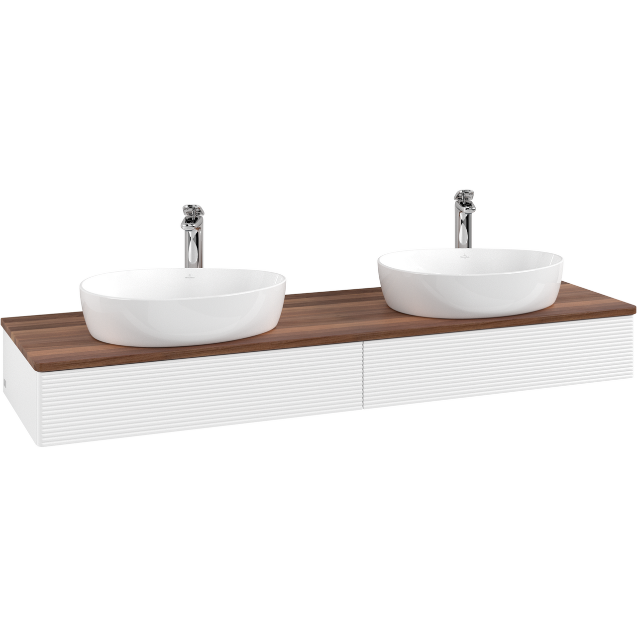 V&b antao servantskap 2 skuffer rillet 1600x190x500 for 2 serv. m/kranhull m/lys matt hvit/valnøtt