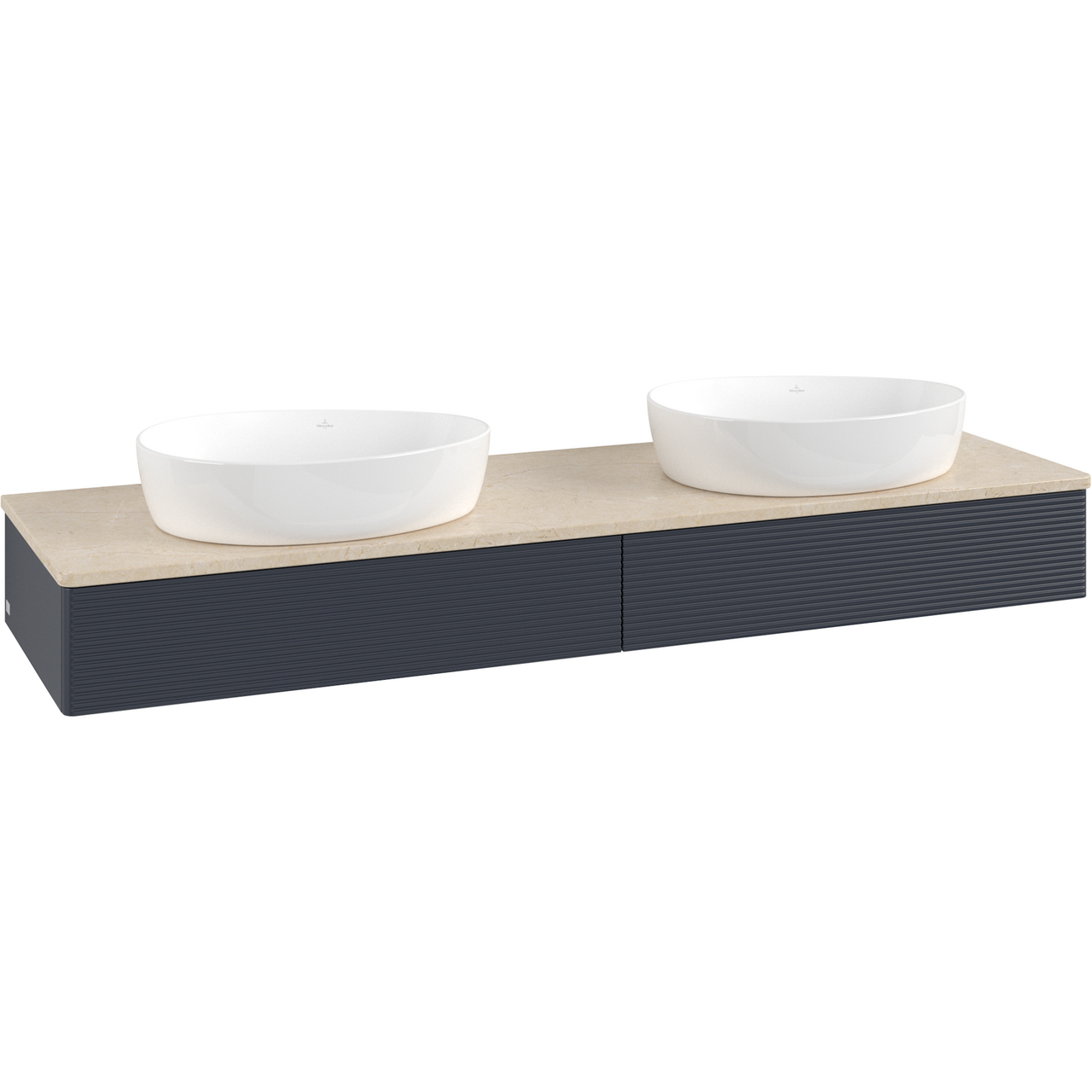 V&b antao servantskap 2 skuffer rillet 1600x190x500 for 2 serv. u/kranhull m/lys blå/créme