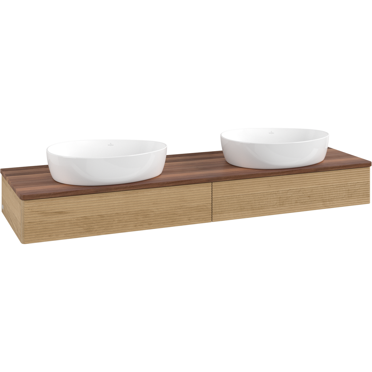 V&b antao servantskap 2 skuffer rillet 1600x190x500 for 2 serv. u/kranhull m/lys eik/valnøtt