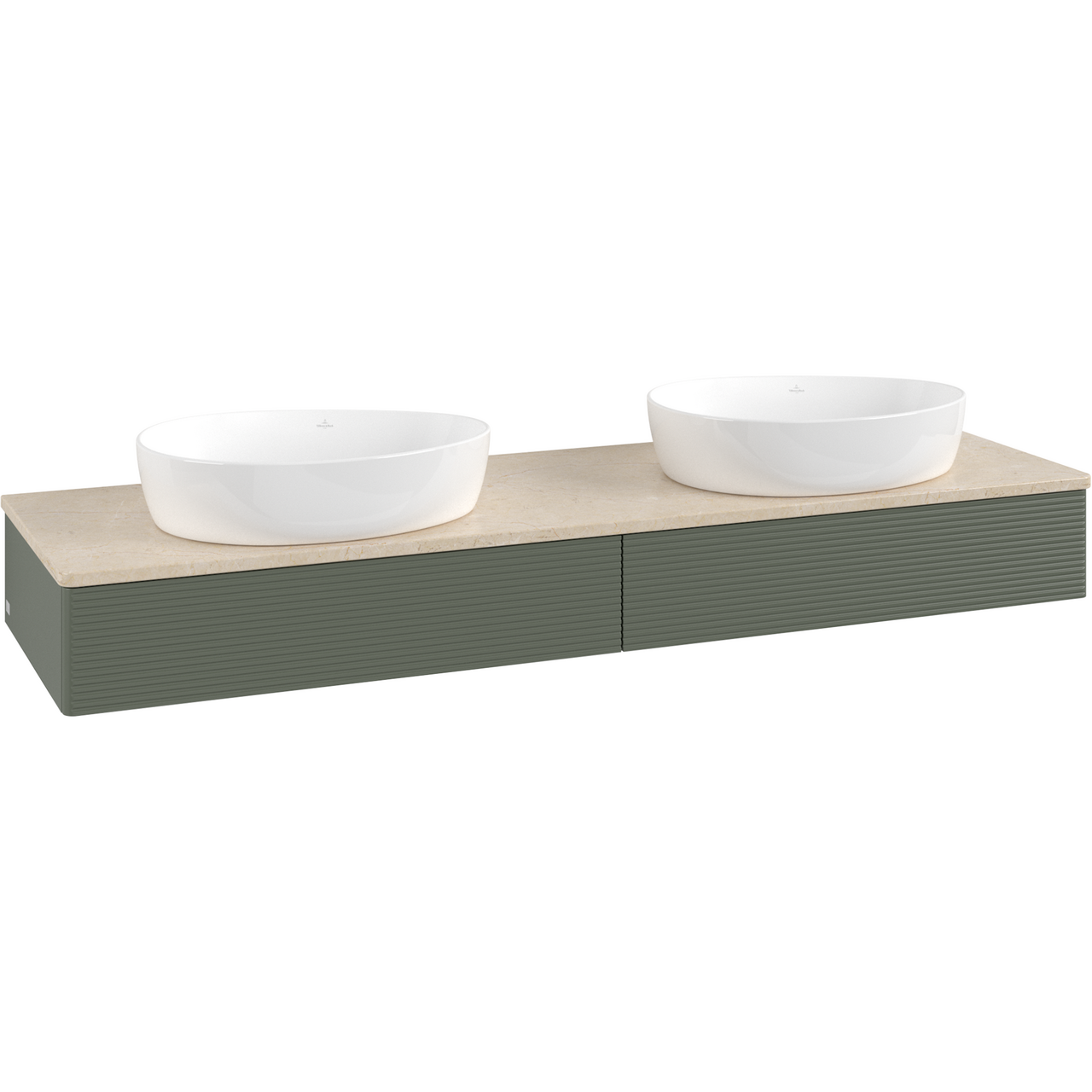 V&b antao servantskap 2 skuffer rillet 1600x190x500 for 2 serv. u/kranhull m/lys grønn/créme