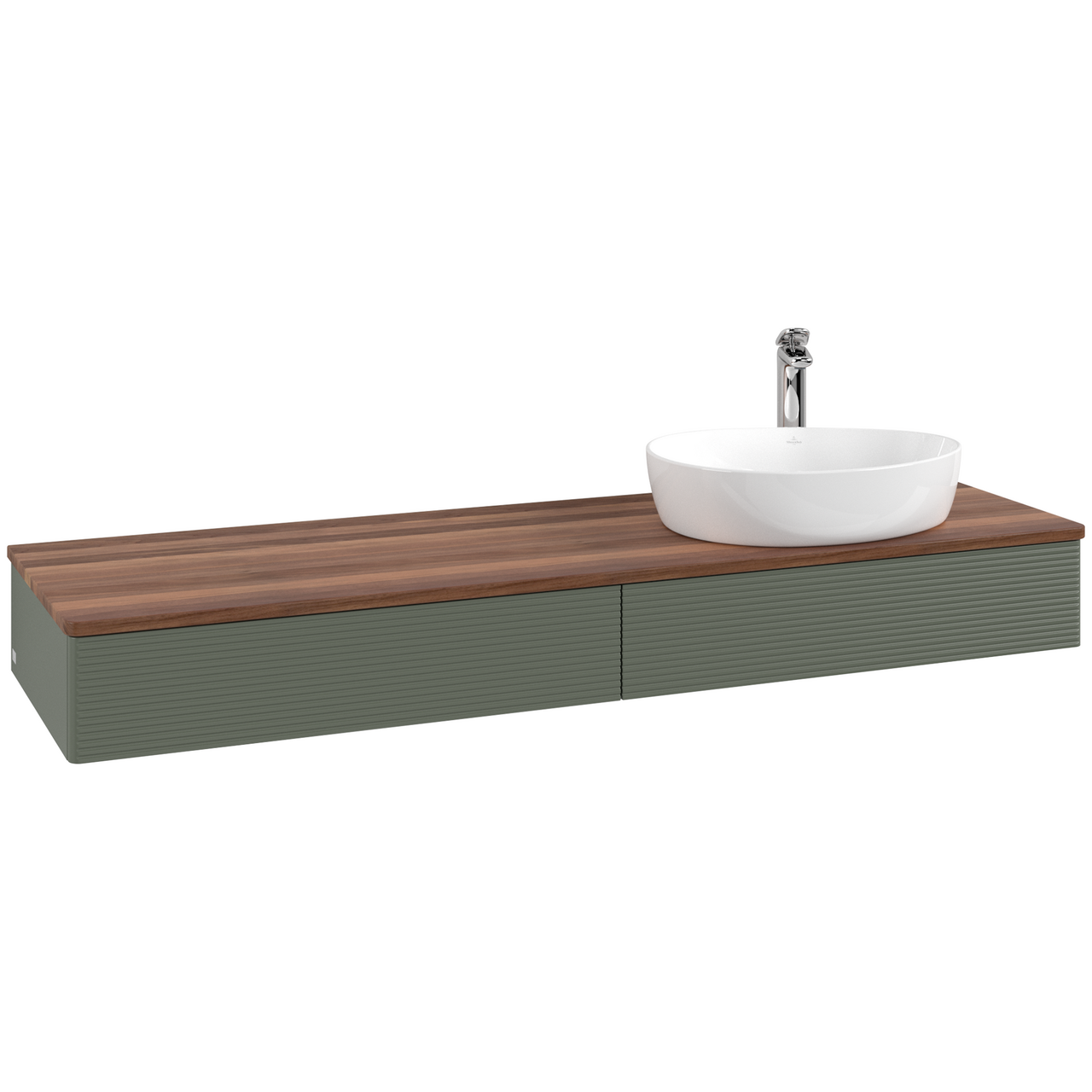 V&b antao servantskap 2 skuffer rillet 1600x190x500 høyre m/kranhull grønn/valnøtt