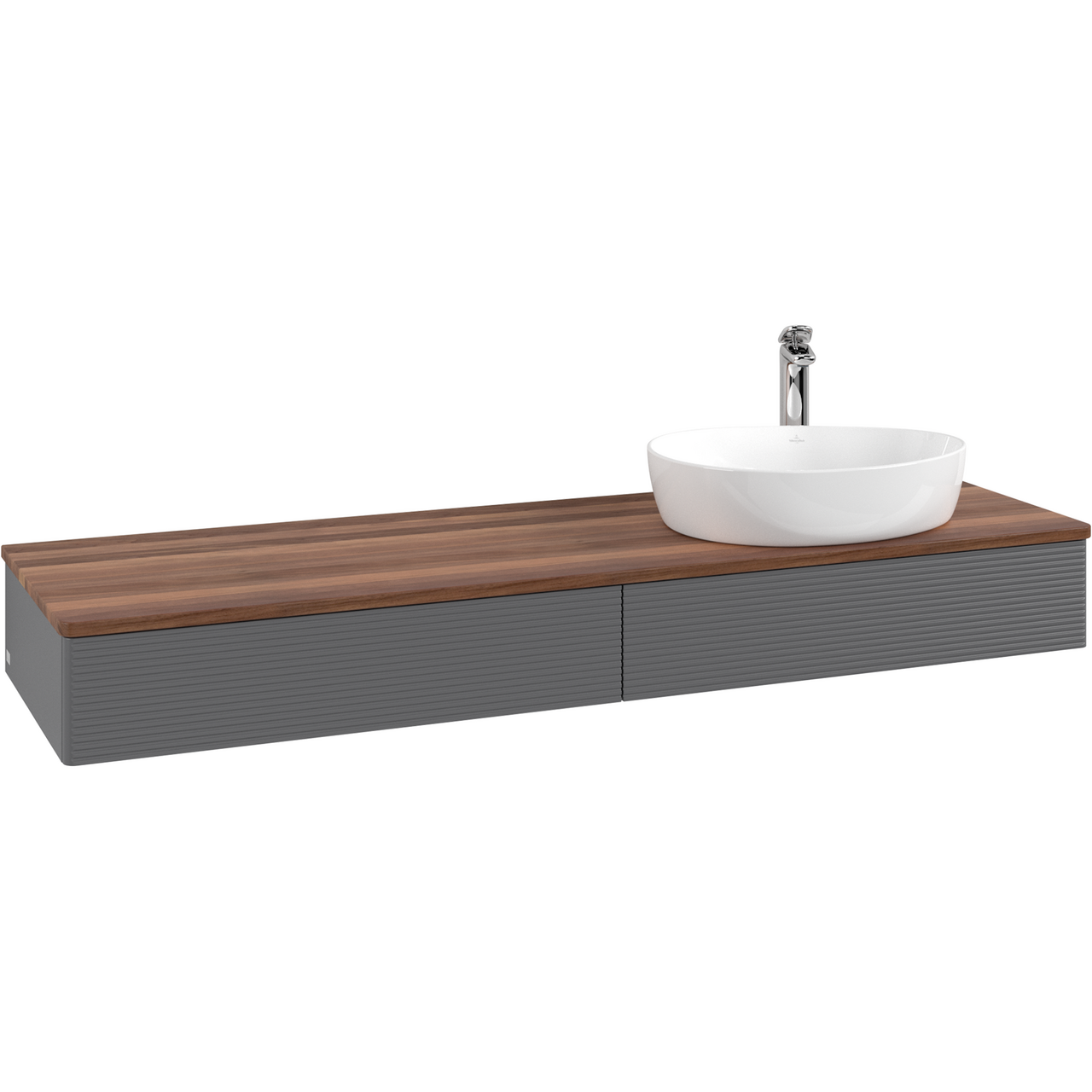 V&b antao servantskap 2 skuffer rillet 1600x190x500 høyre m/kranhull m/lys antrasitt/valnøtt