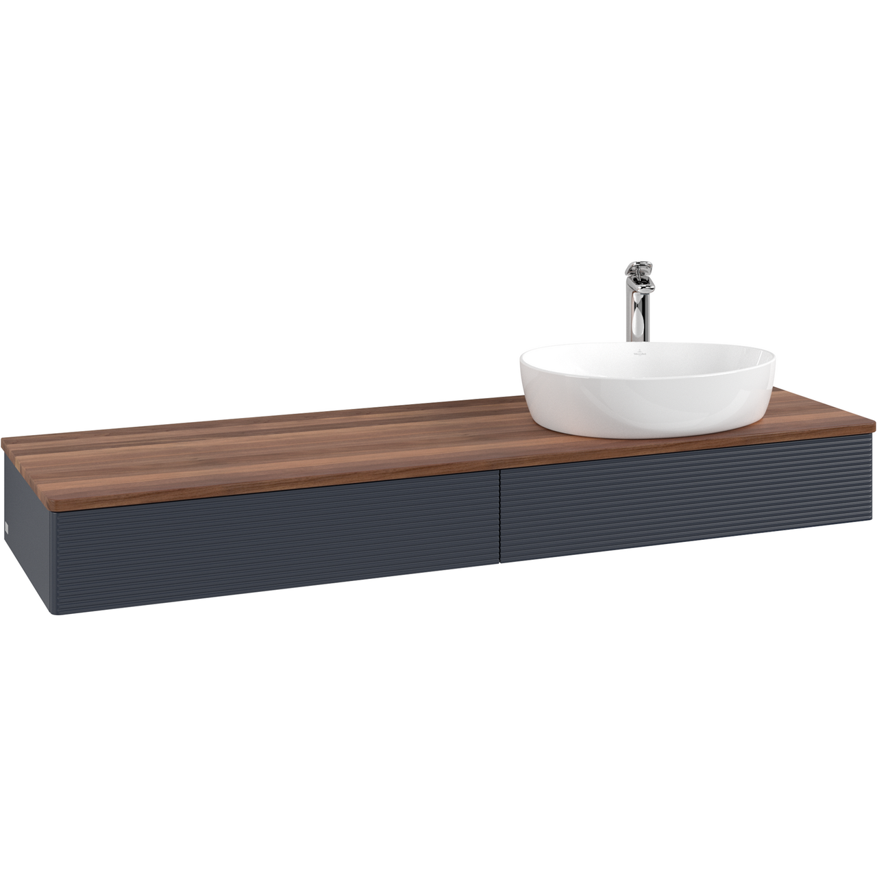 V&b antao servantskap 2 skuffer rillet 1600x190x500 høyre m/kranhull m/lys blå/valnøtt