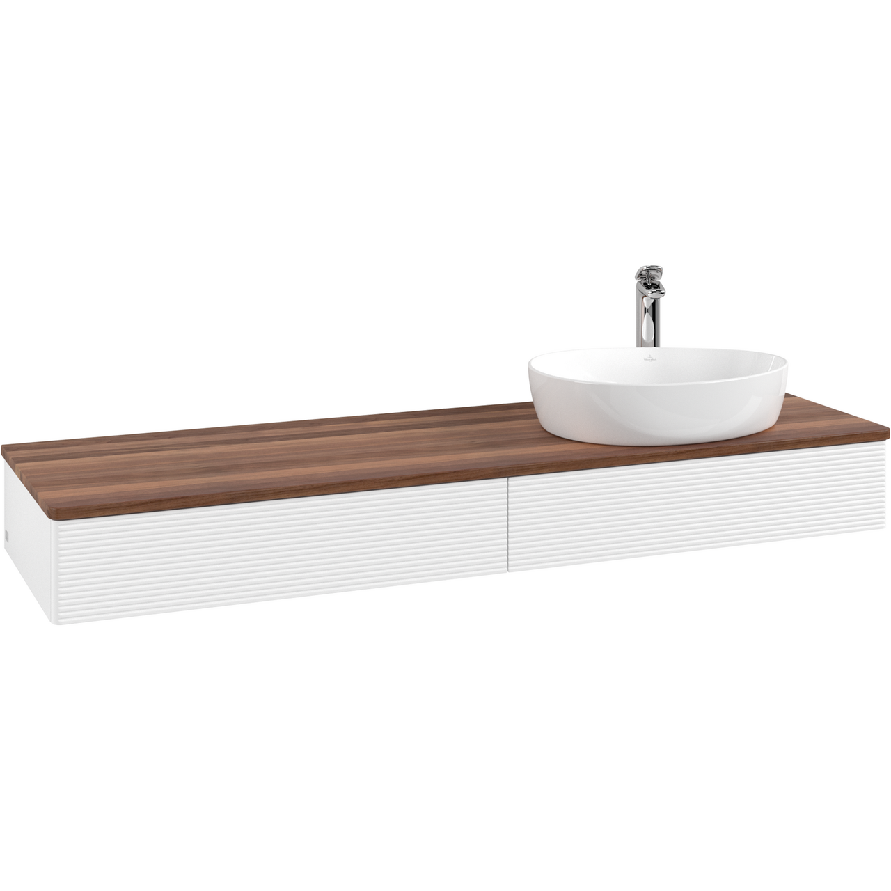 V&b antao servantskap 2 skuffer rillet 1600x190x500 høyre m/kranhull m/lys matt hvit/valnøtt