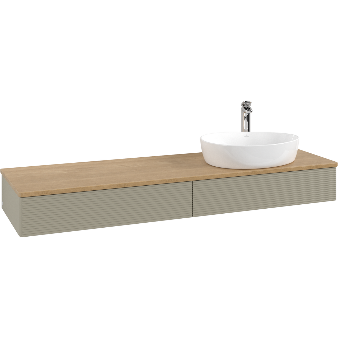 V&b antao servantskap 2 skuffer rillet 1600x190x500 høyre m/kranhull m/lys stengrå/eik