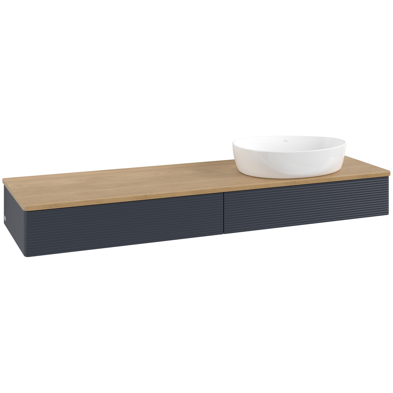 V&b antao servantskap 2 skuffer rillet 1600x190x500 høyre u/kranhull blå/eik