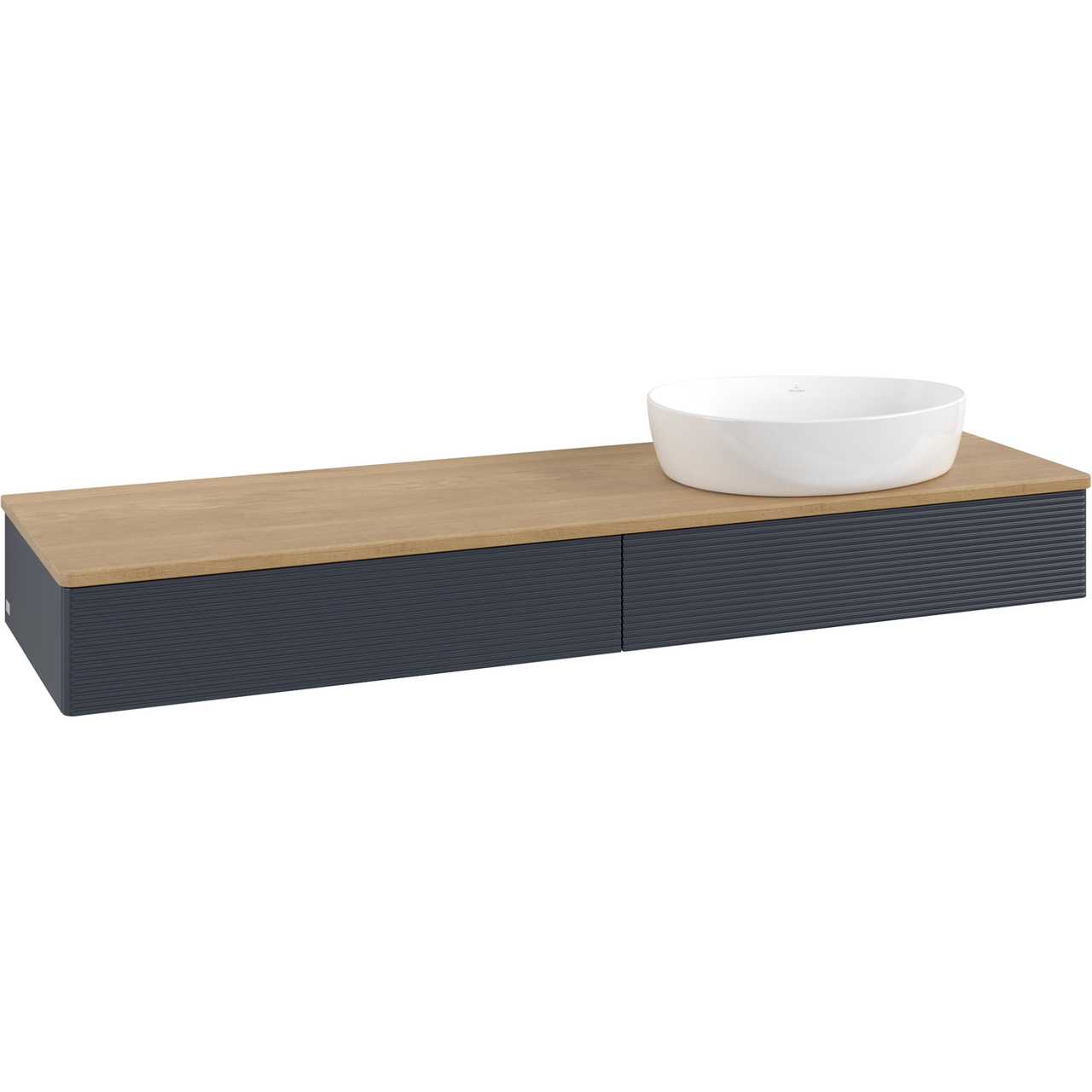 V&b antao servantskap 2 skuffer rillet 1600x190x500 høyre u/kranhull m/lys blå/eik