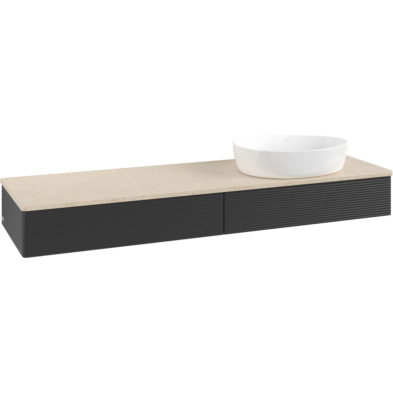 V&b antao servantskap 2 skuffer rillet 1600x190x500 høyre u/kranhull m/lys matt sort/créme