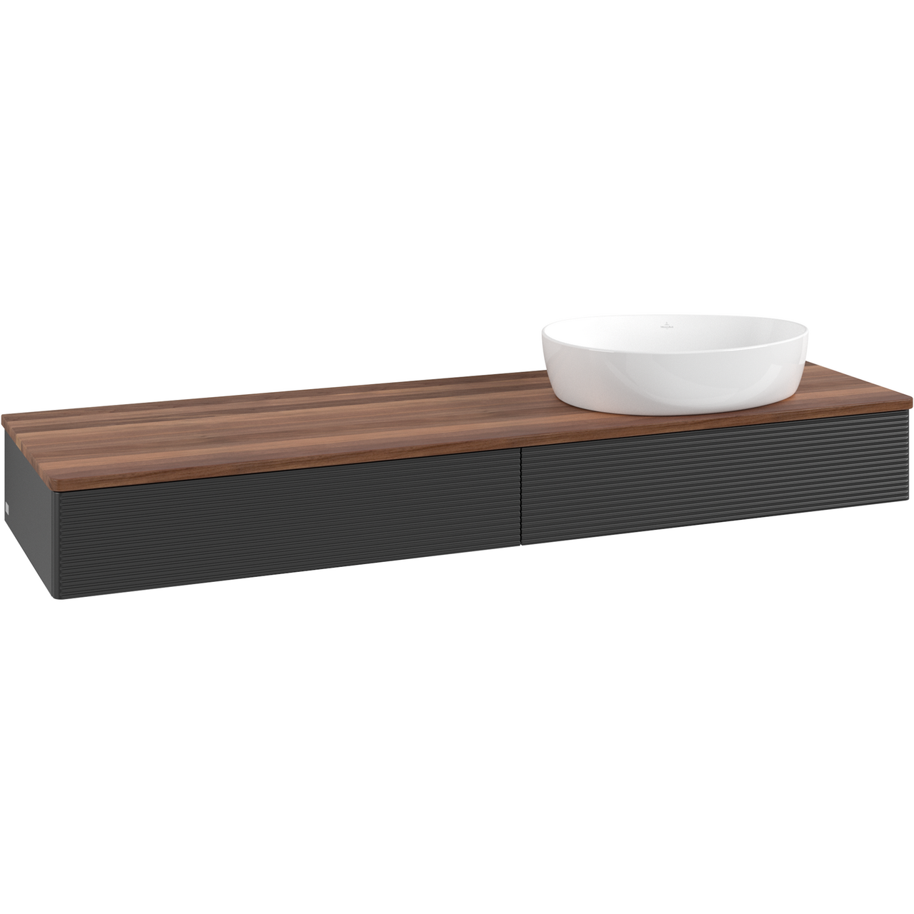 V&b antao servantskap 2 skuffer rillet 1600x190x500 høyre u/kranhull m/lys matt sort/valnøtt