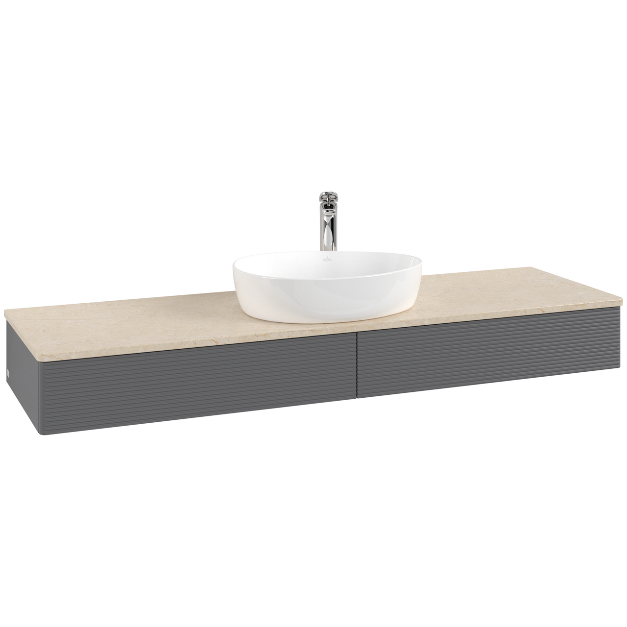 V&b antao servantskap 2 skuffer rillet 1600x190x500 m/kranhull antrasitt/créme
