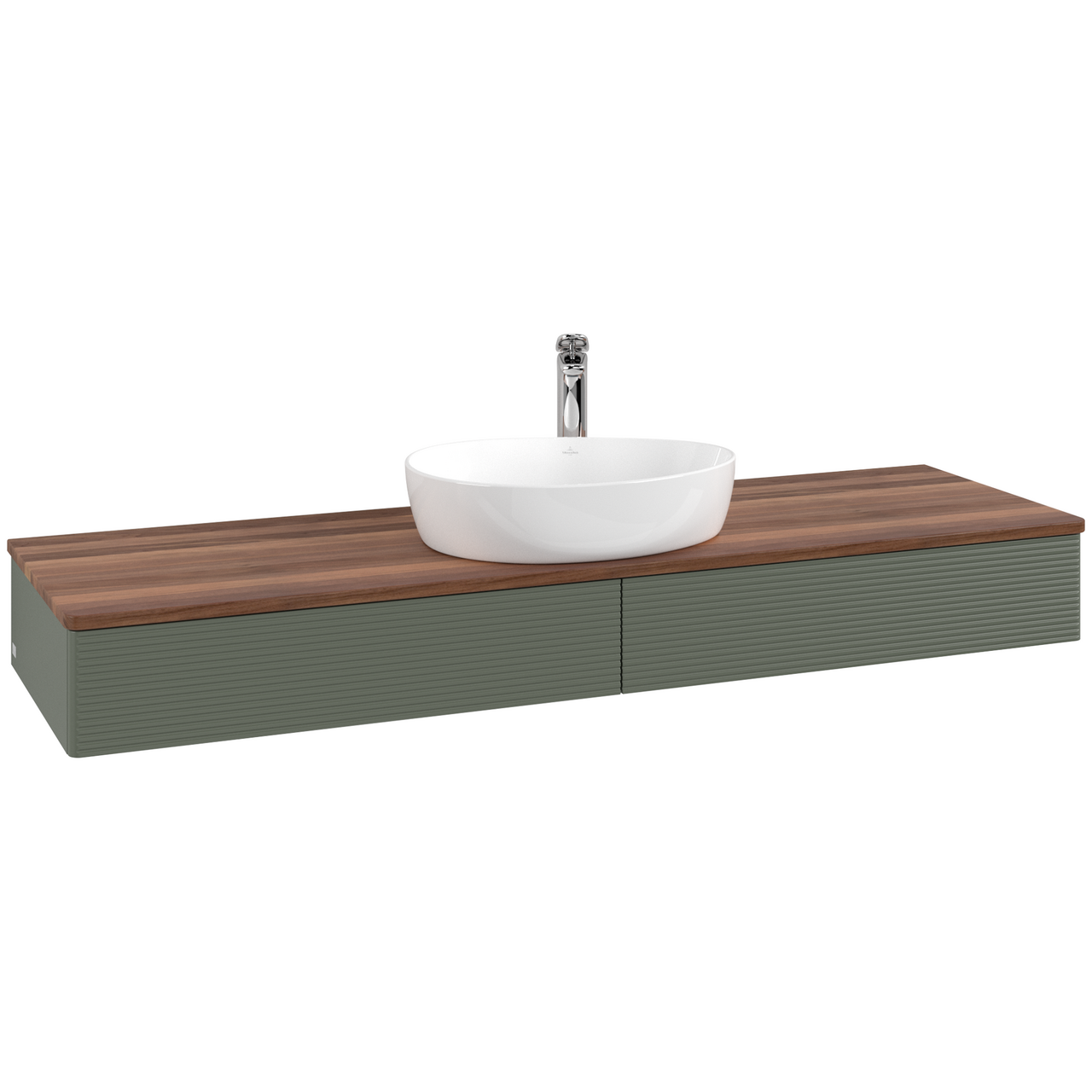 V&b antao servantskap 2 skuffer rillet 1600x190x500 m/kranhull grønn/valnøtt
